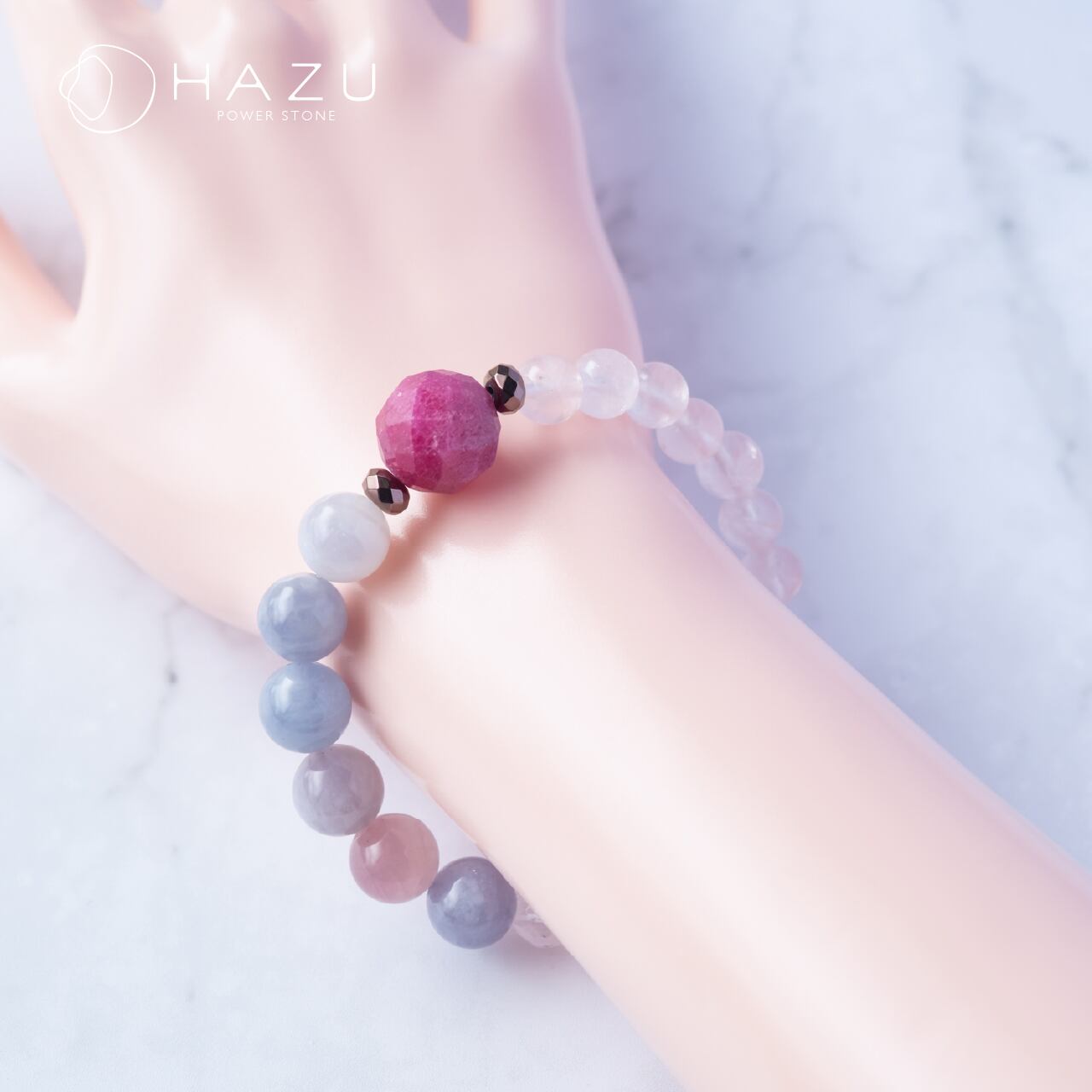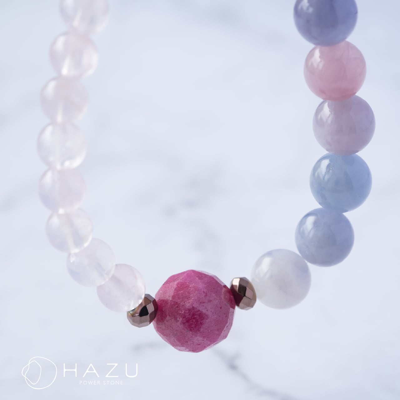癒しと情熱の良縁ブレス[ブルーローズクォーツ/ローズクォーツ/ルビー/水晶/ヘマタイト]