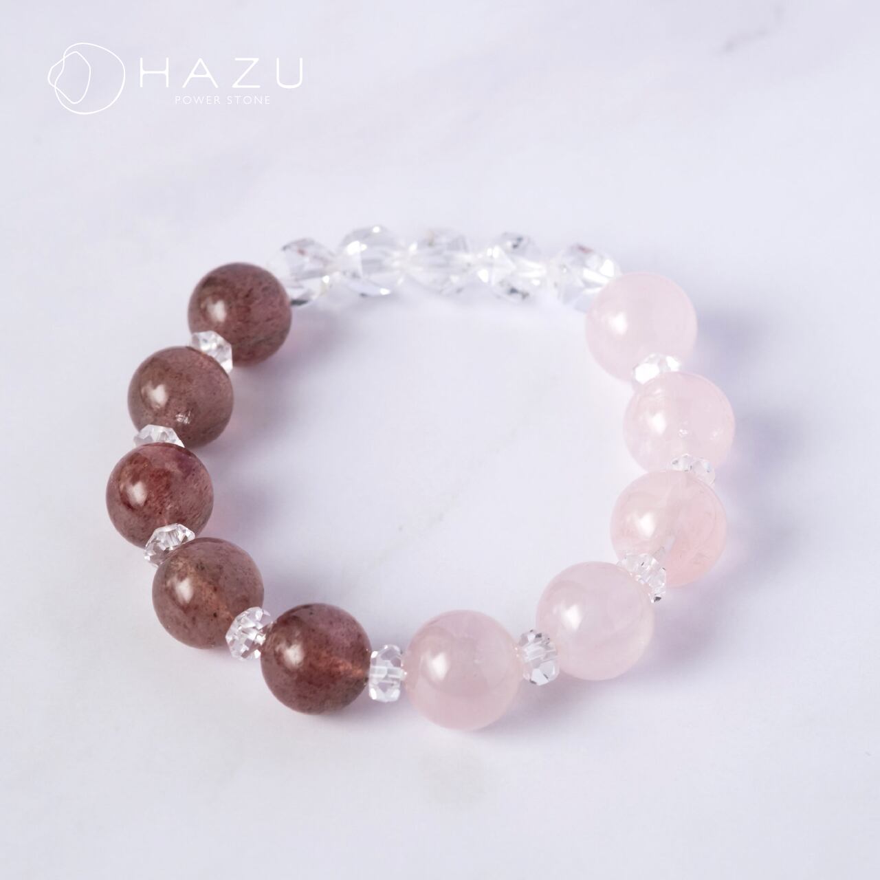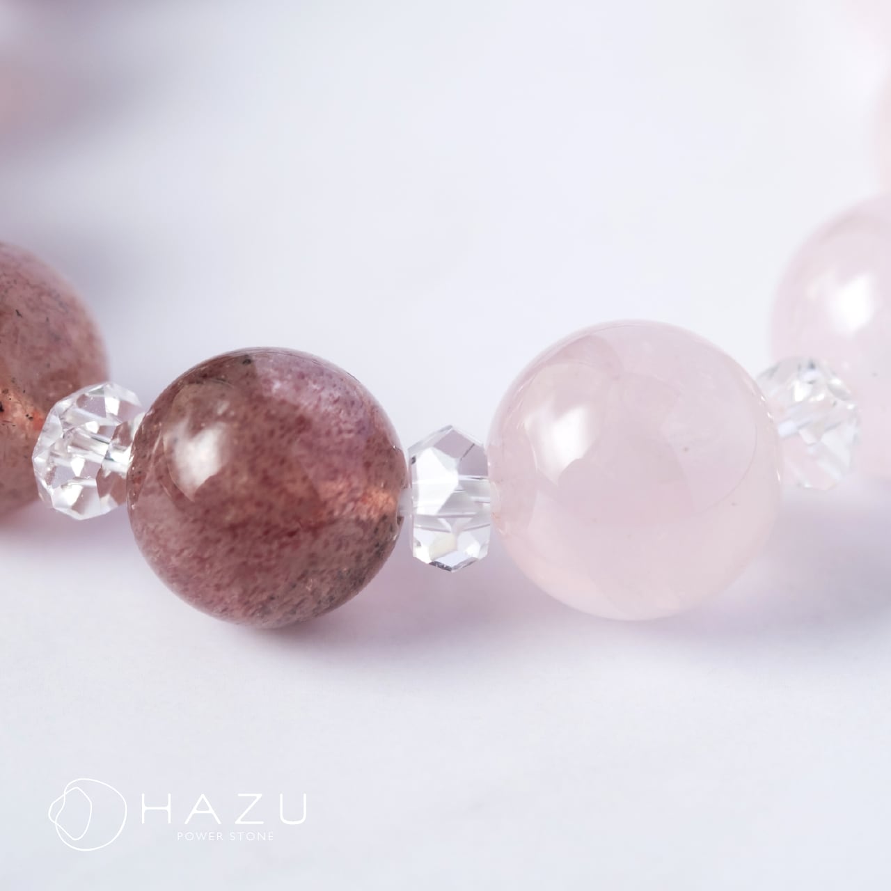 愛と若さを呼ぶ大玉ブレス[ストロベリークォーツ/ローズクォーツ/水晶]