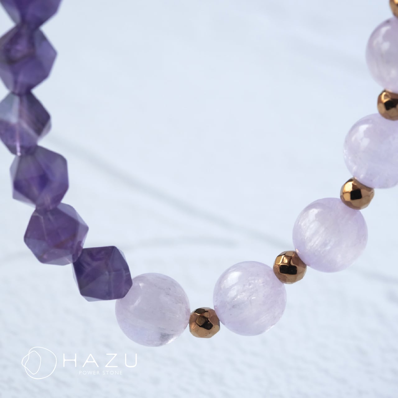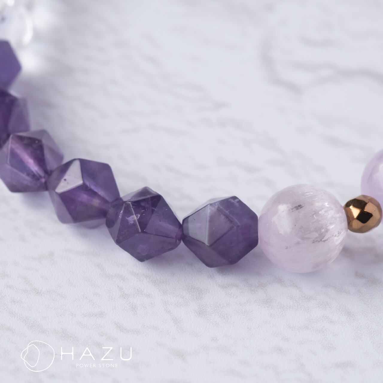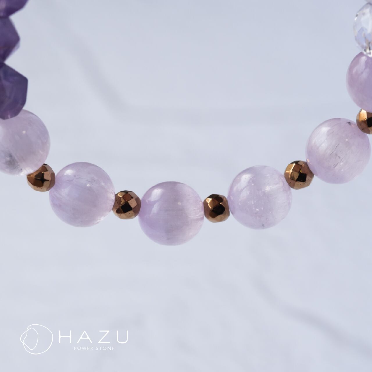 高ランク・クンツァイトブレス[クンツァイト/アメジスト/水晶/ヘマタイト]