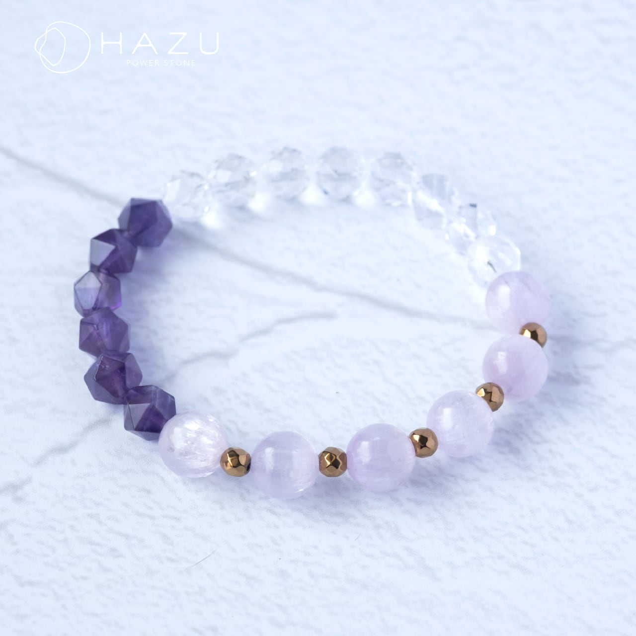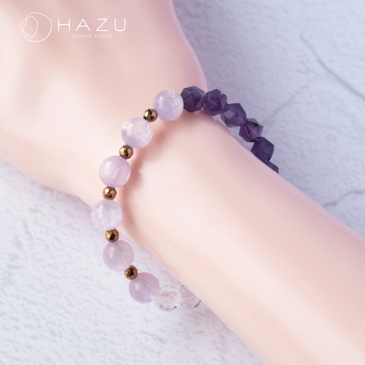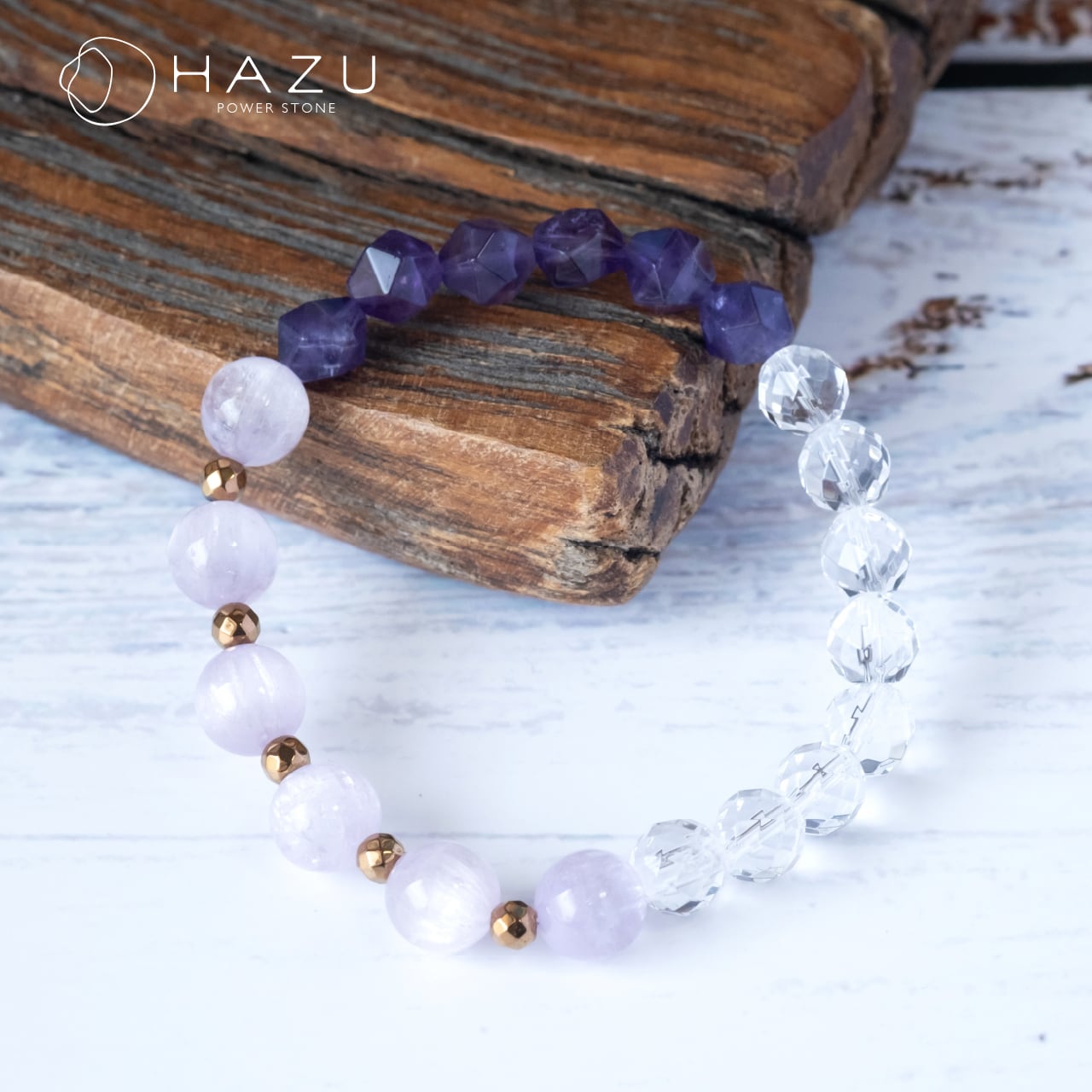 高ランク・クンツァイトブレス[クンツァイト/アメジスト/水晶/ヘマタイト]