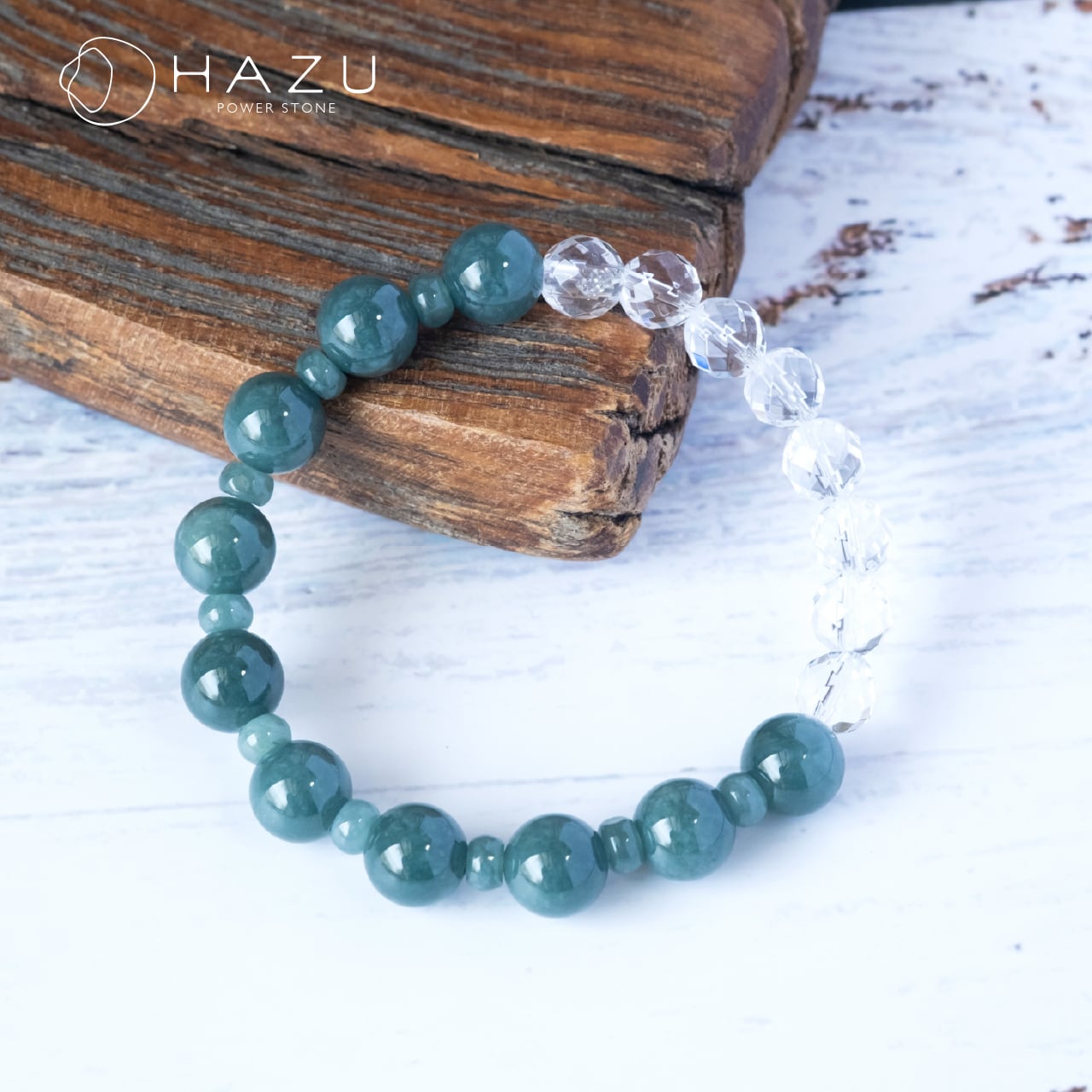 水晶、ミャンマー産の青翡翠と組み合わせた