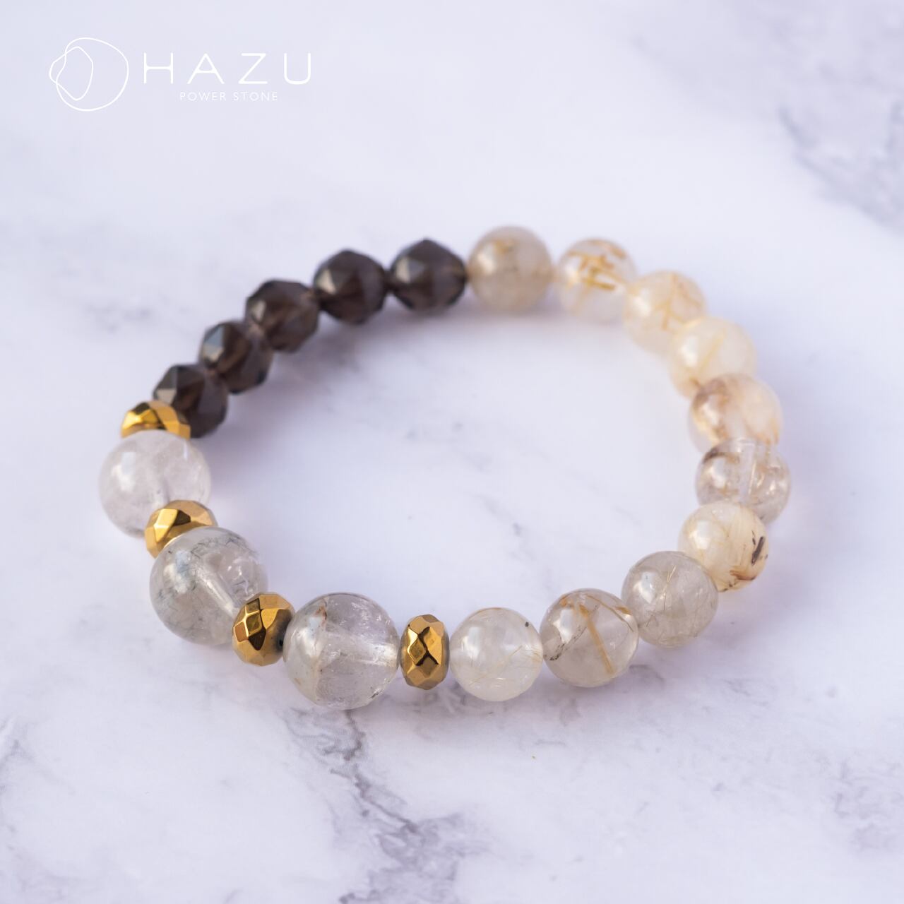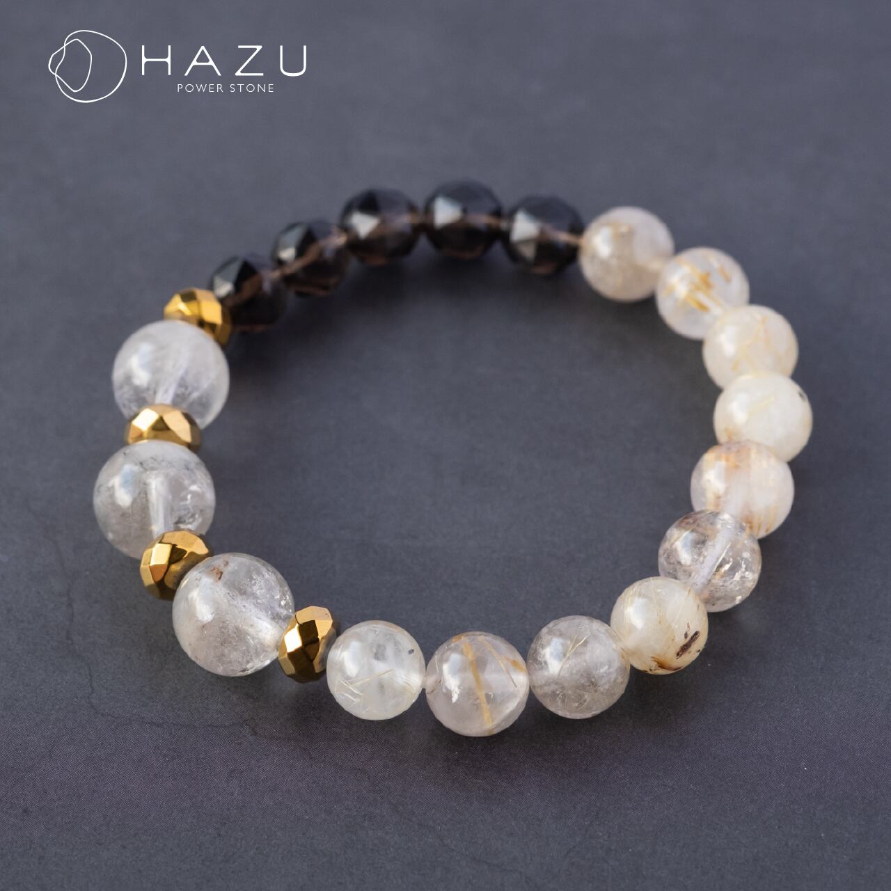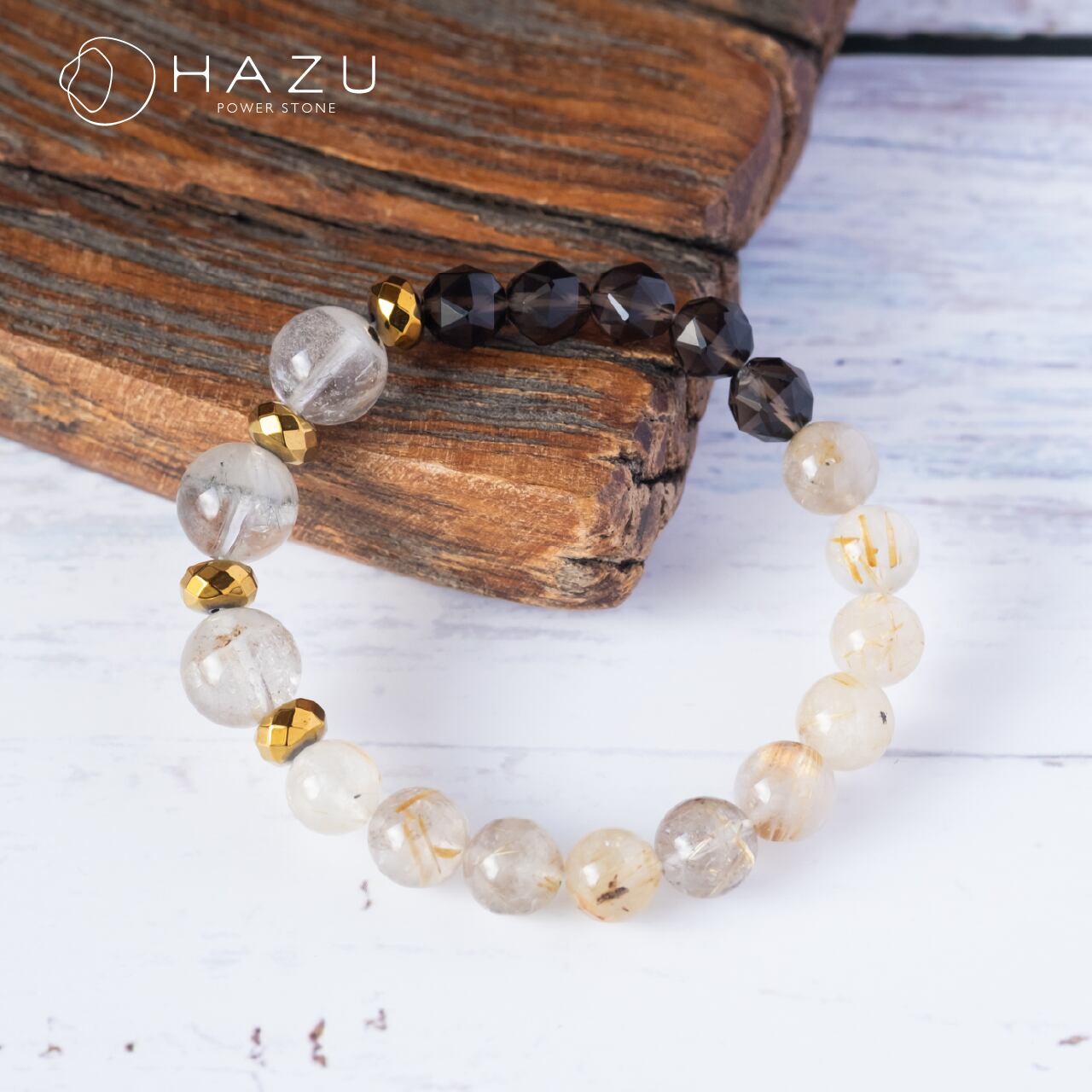 SALE☆成長と金運UPブレス[ホワイトガーデン/ルチルクォーツ/スモーキークォーツ/ヘマタイト]