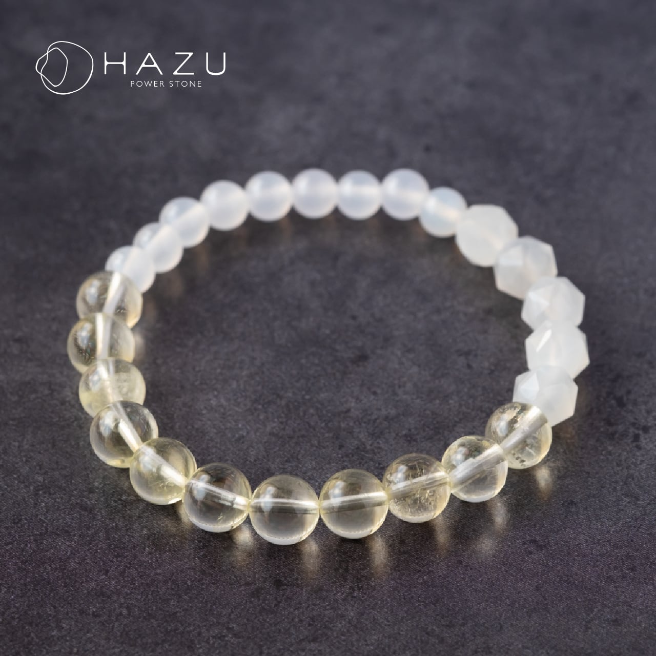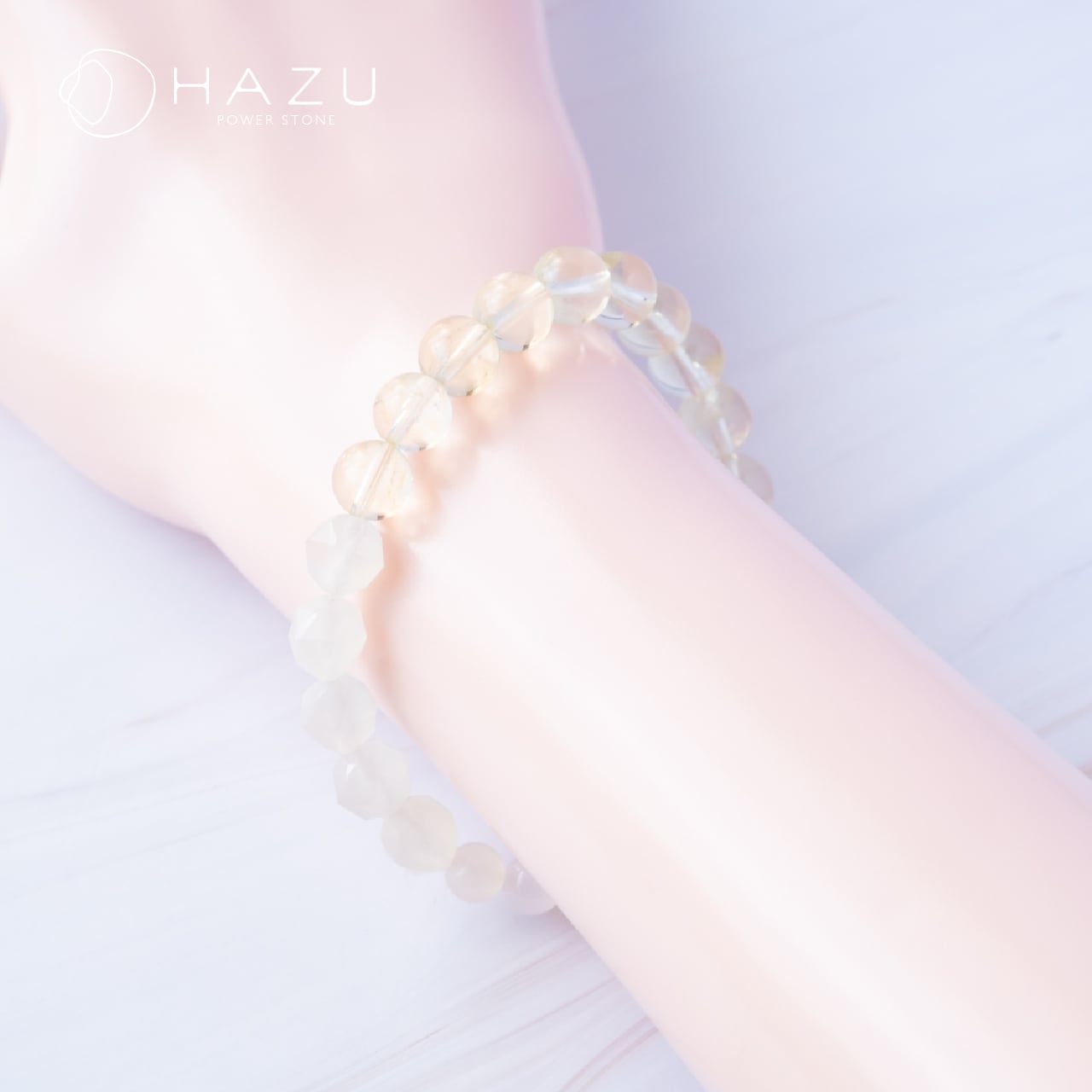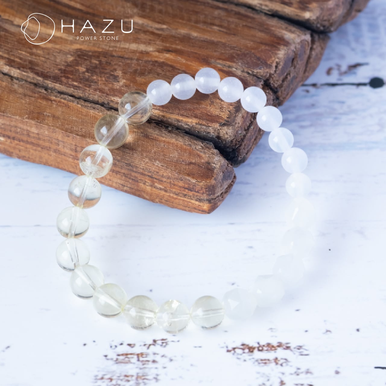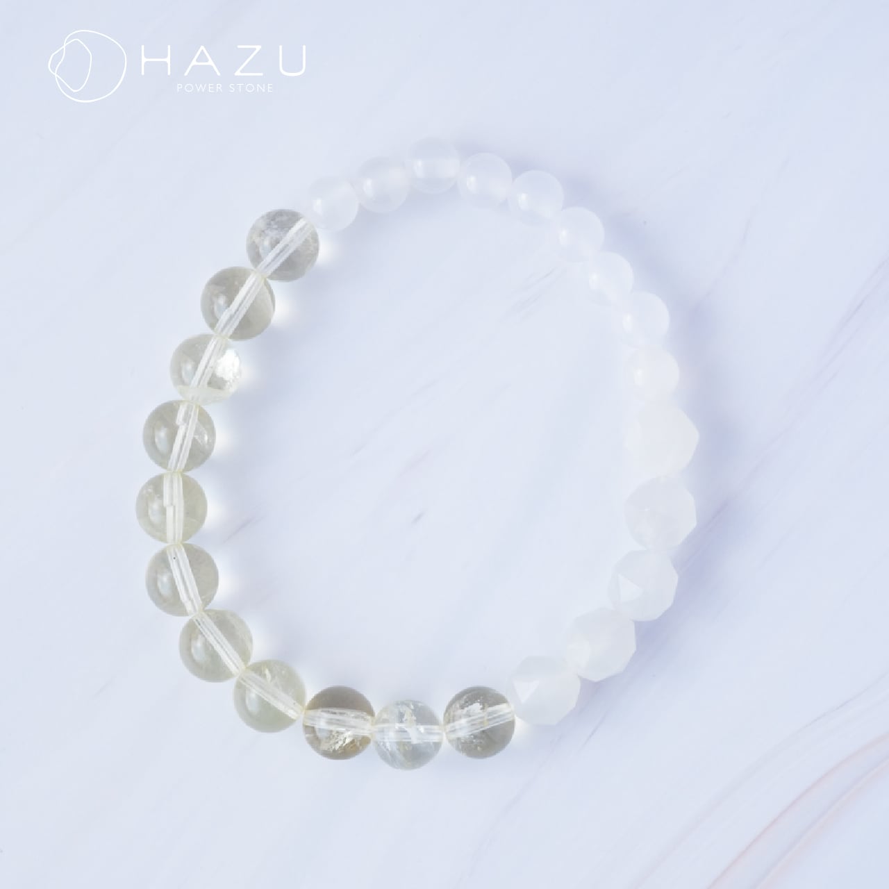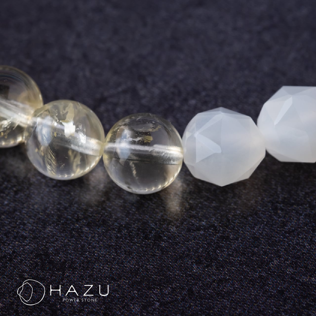 月夜のような癒しブレス[レモンクォーツ/ムーンストーン/ホワイトカルセドニー]