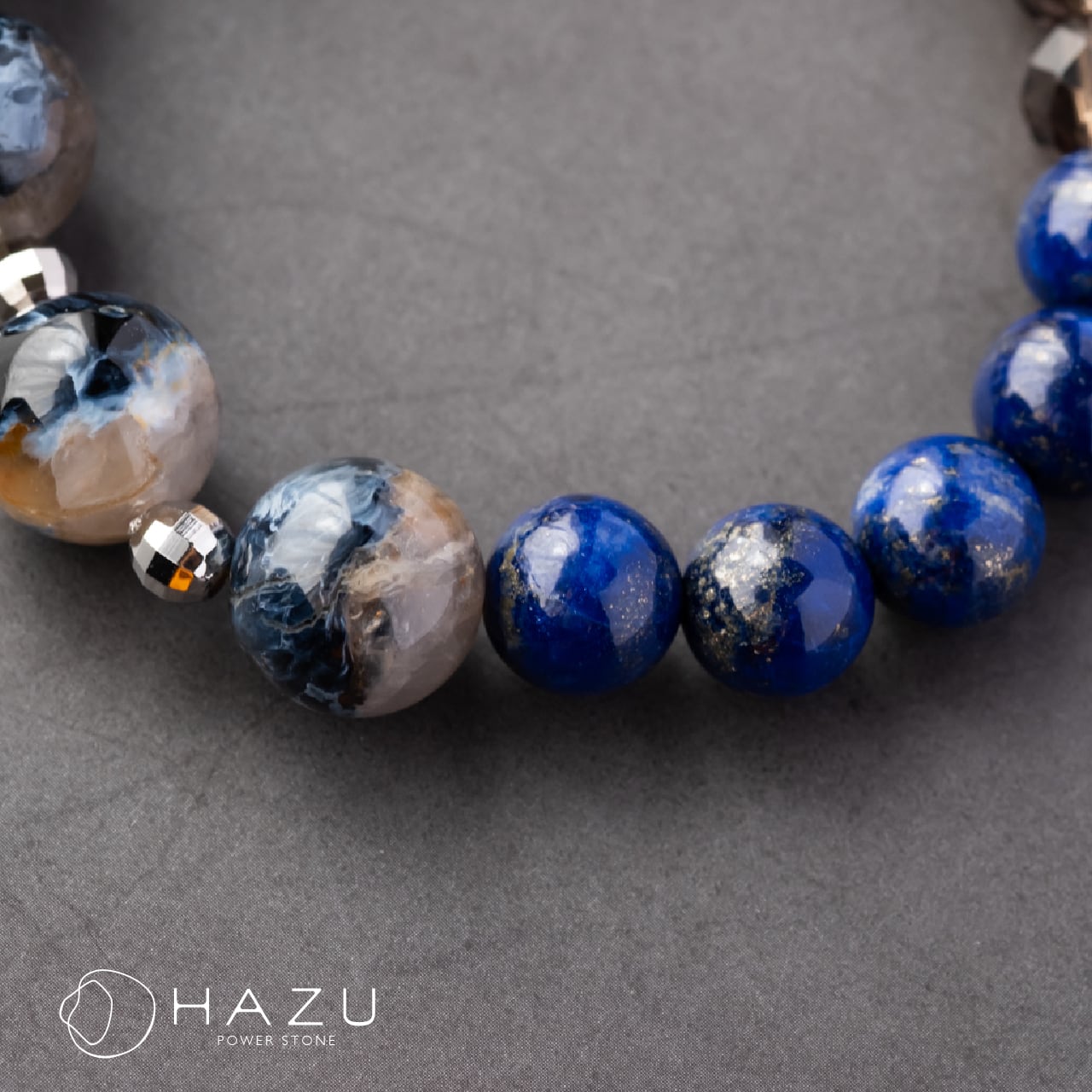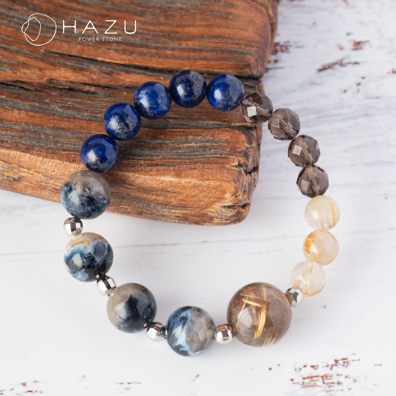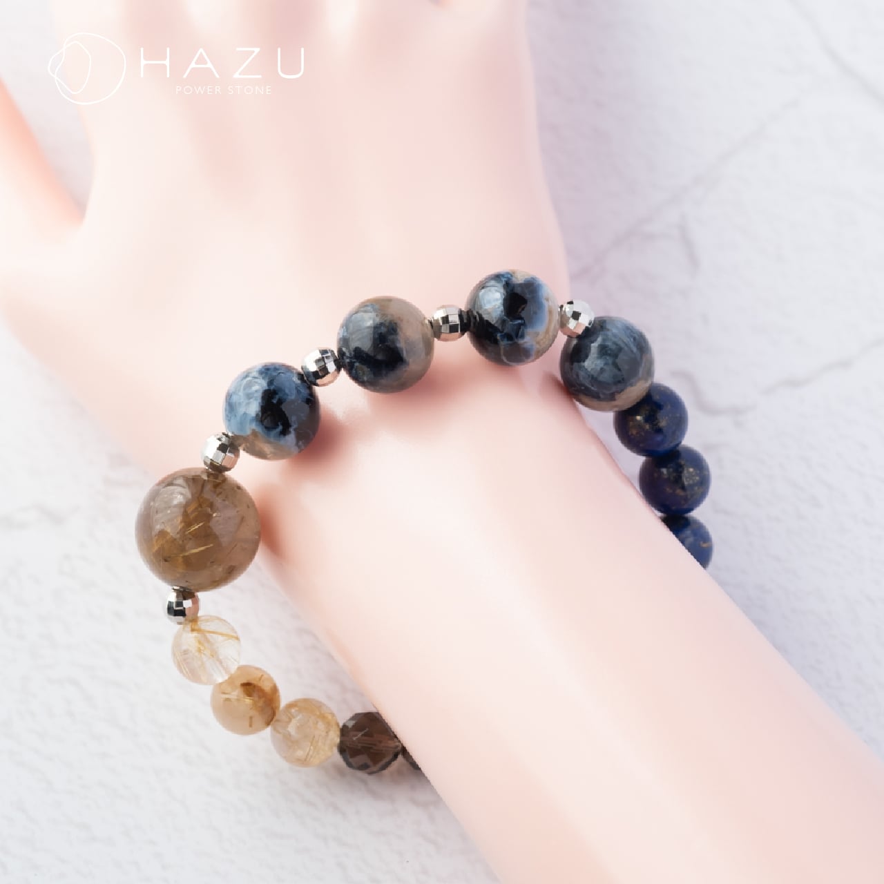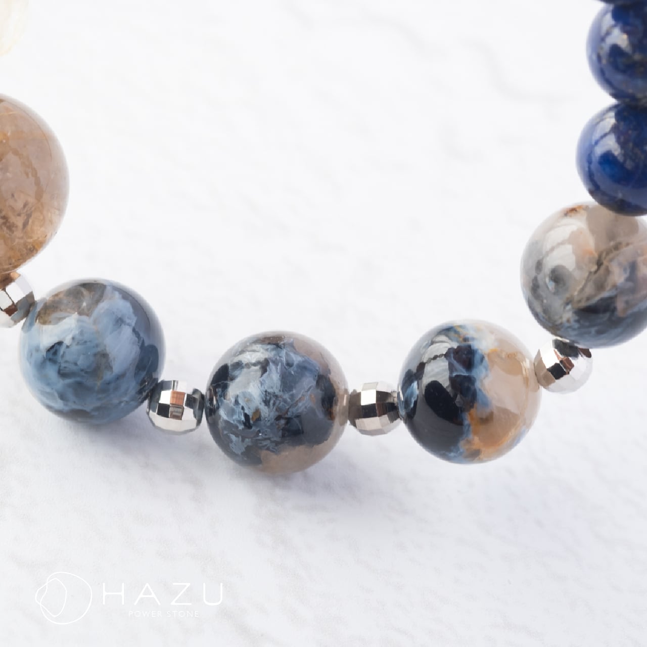 個性際立つ黄金と嵐の輝き[ブルーピーターサイト/ルチルクォーツ/ラピスラズリ/スモーキークォーツ]