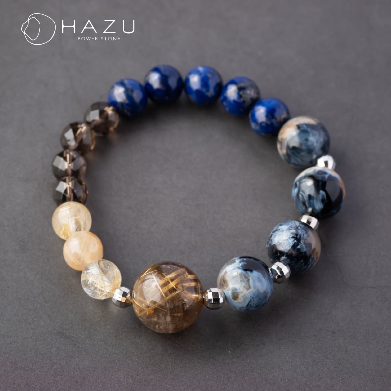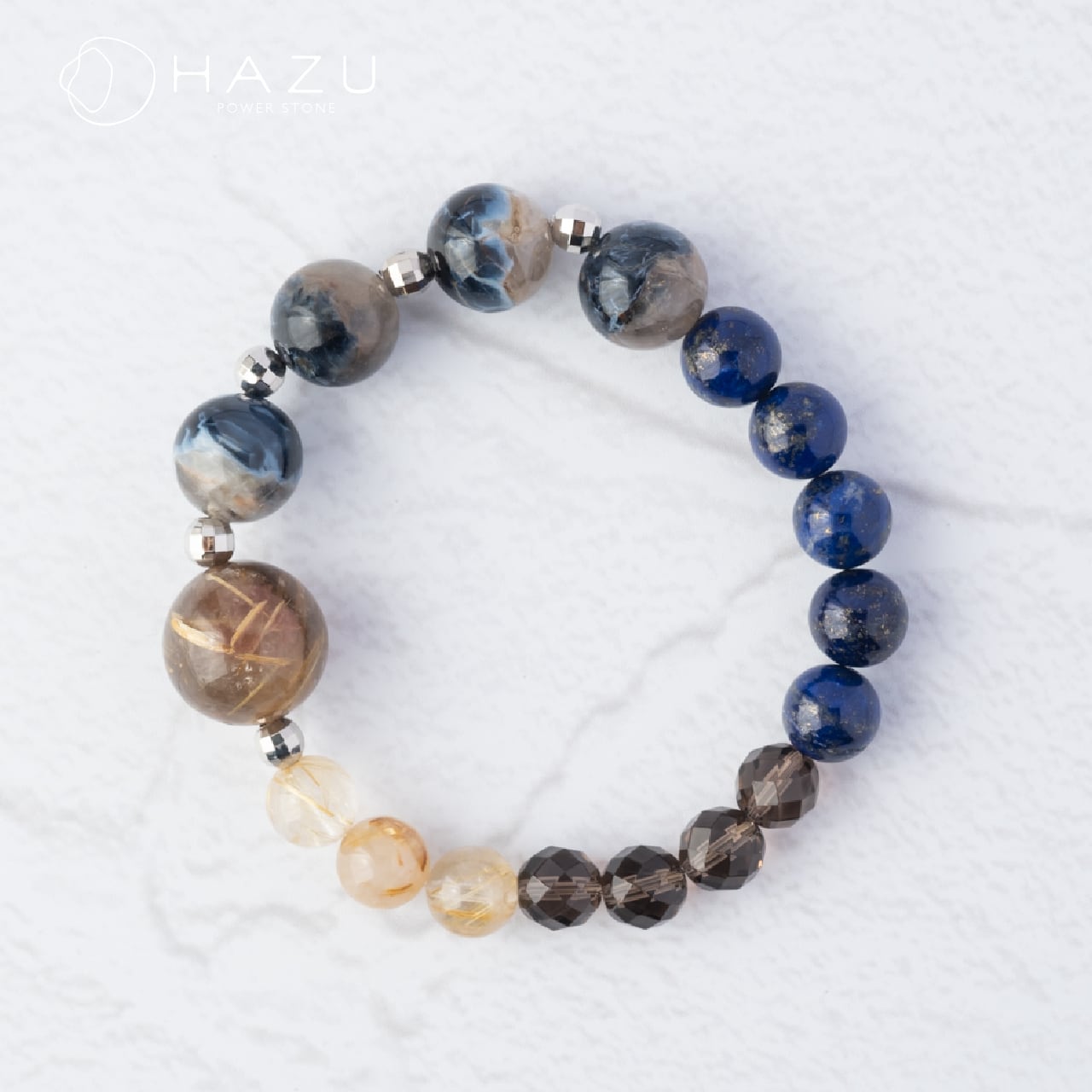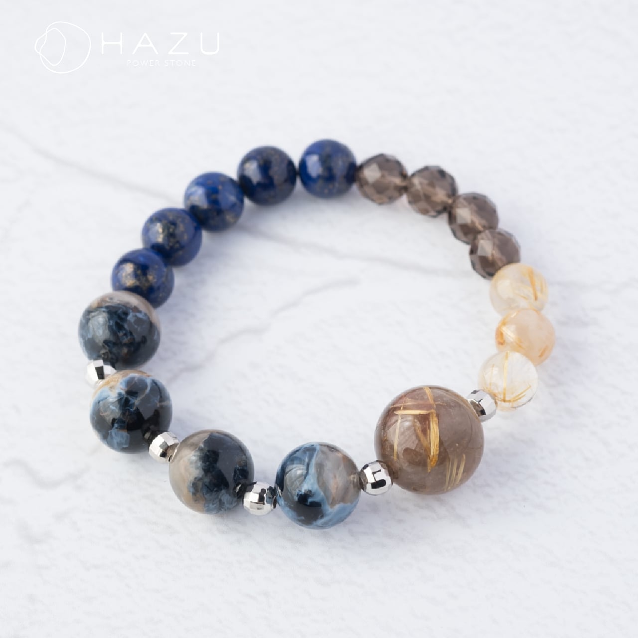 個性際立つ黄金と嵐の輝き[ブルーピーターサイト/ルチルクォーツ/ラピスラズリ/スモーキークォーツ]