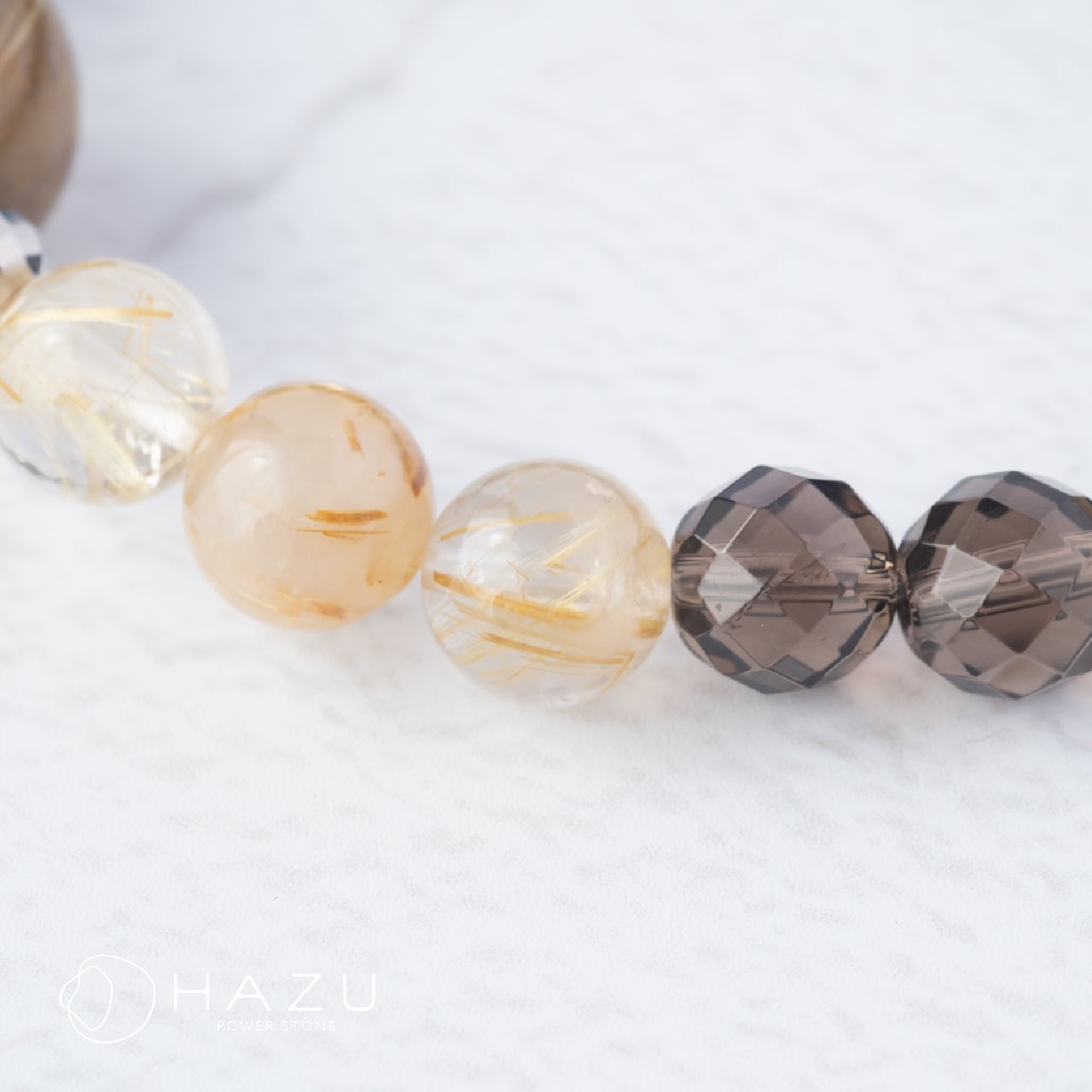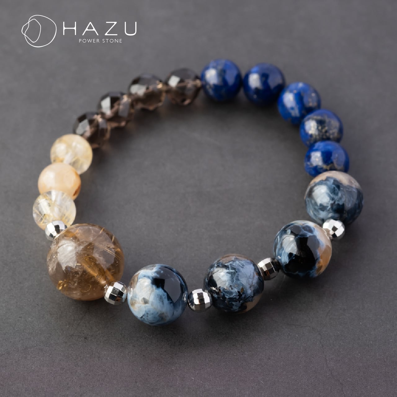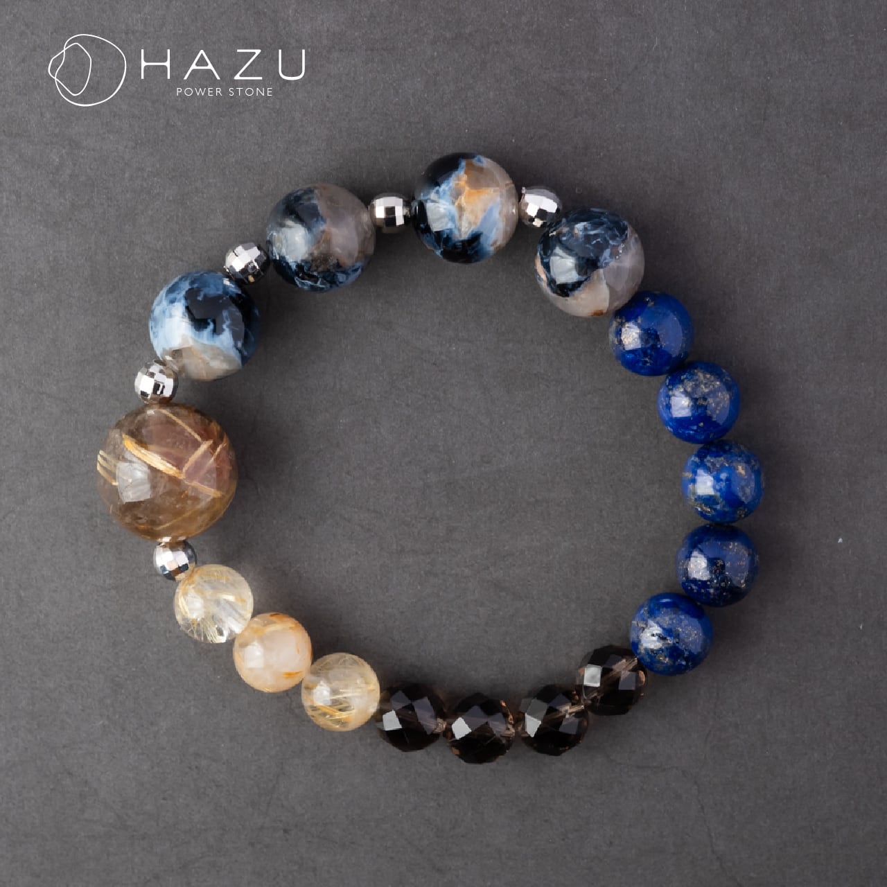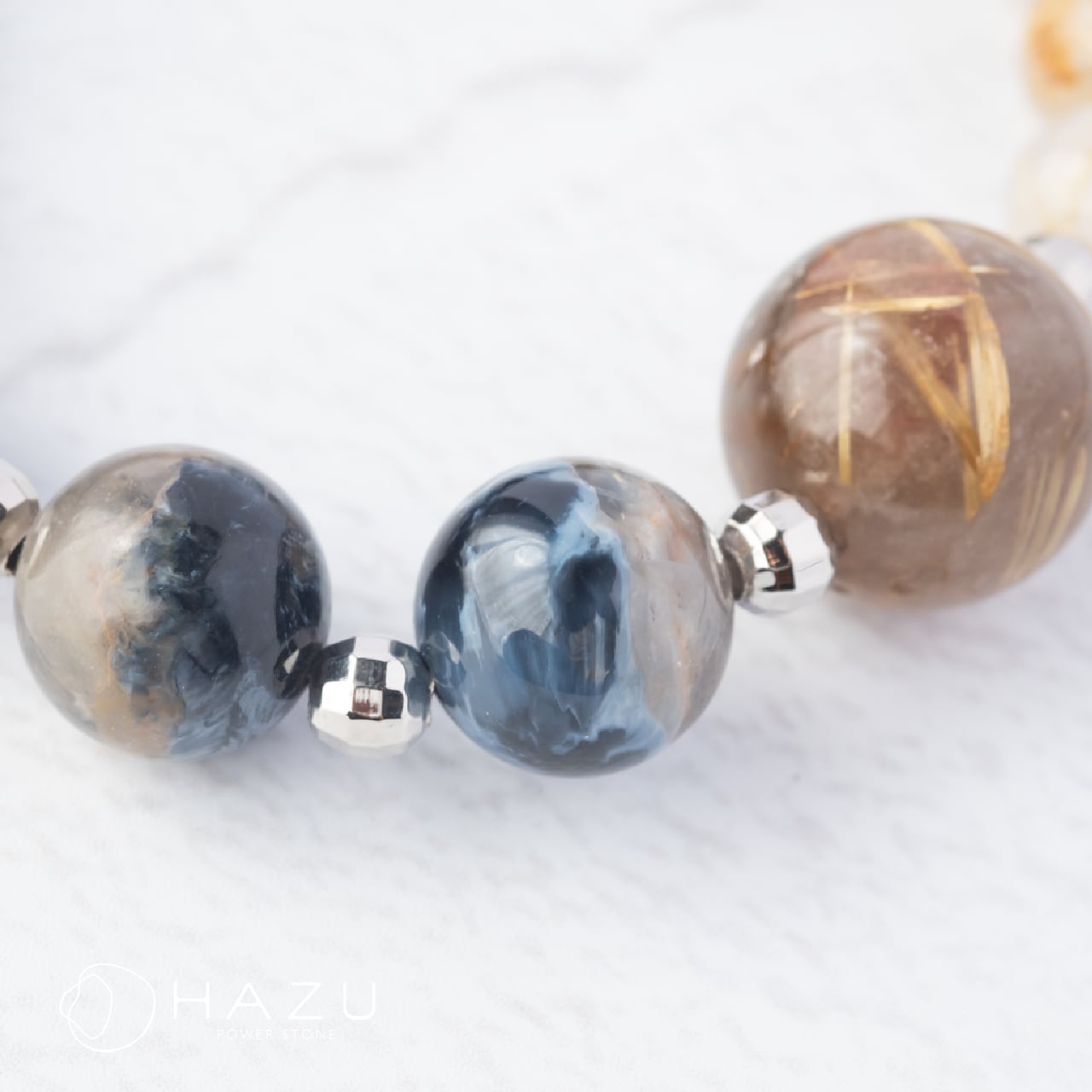 個性際立つ黄金と嵐の輝き[ブルーピーターサイト/ルチルクォーツ/ラピスラズリ/スモーキークォーツ]