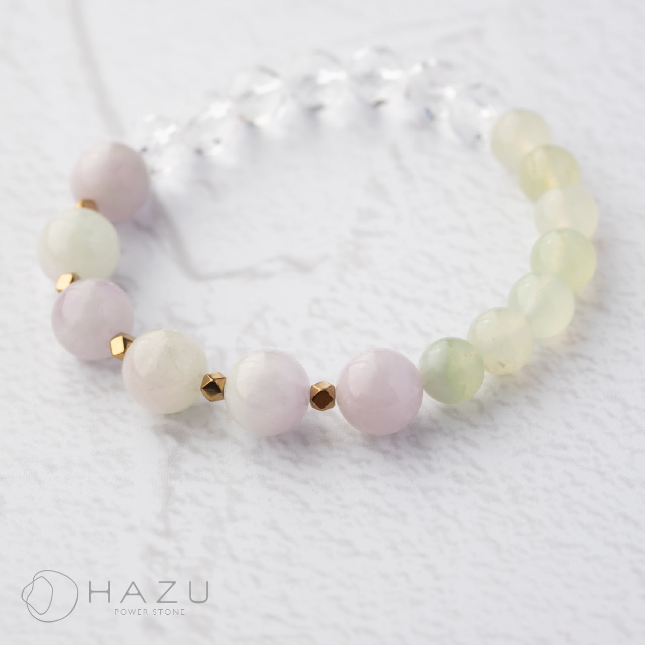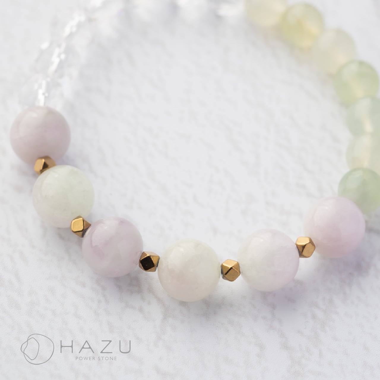 絶妙カラーが織りなす芯ある優しさ[バイカラークンツァイト/ボーウェナイト/水晶/ヘマタイト]
