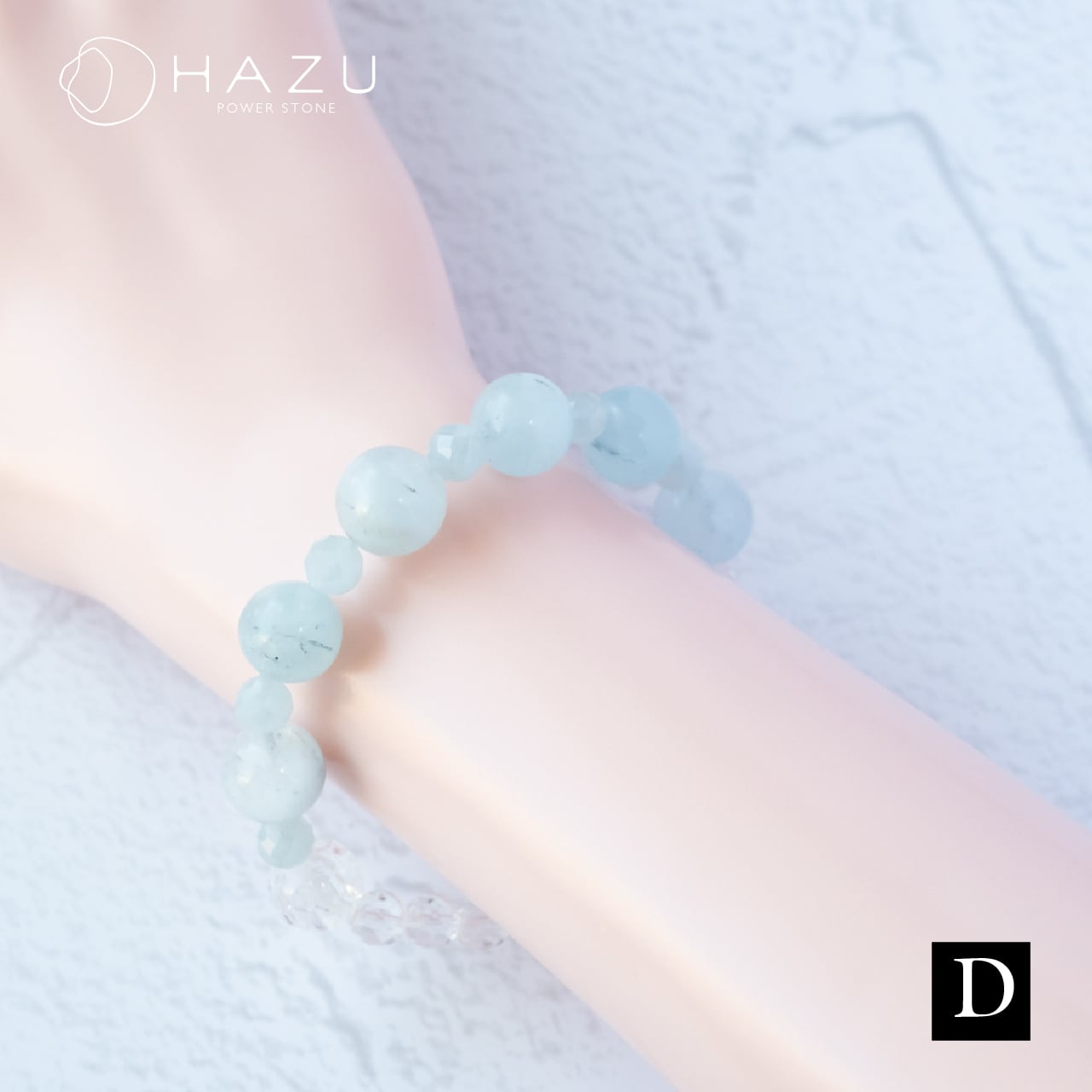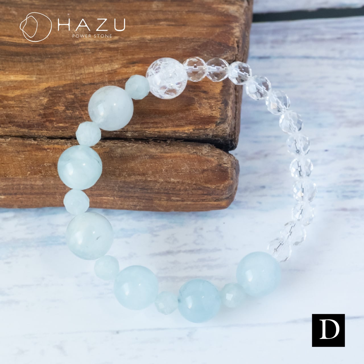 柔らかいブルーのシンプルなアクアマリンと水晶ブレス