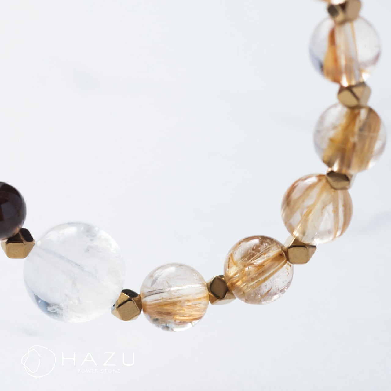 強い輝きの高ランクルチル&モリオン[ゴールドルチルクォーツ/モリオン/水晶/エンジェルラダークォーツ/ヘマタイト]
