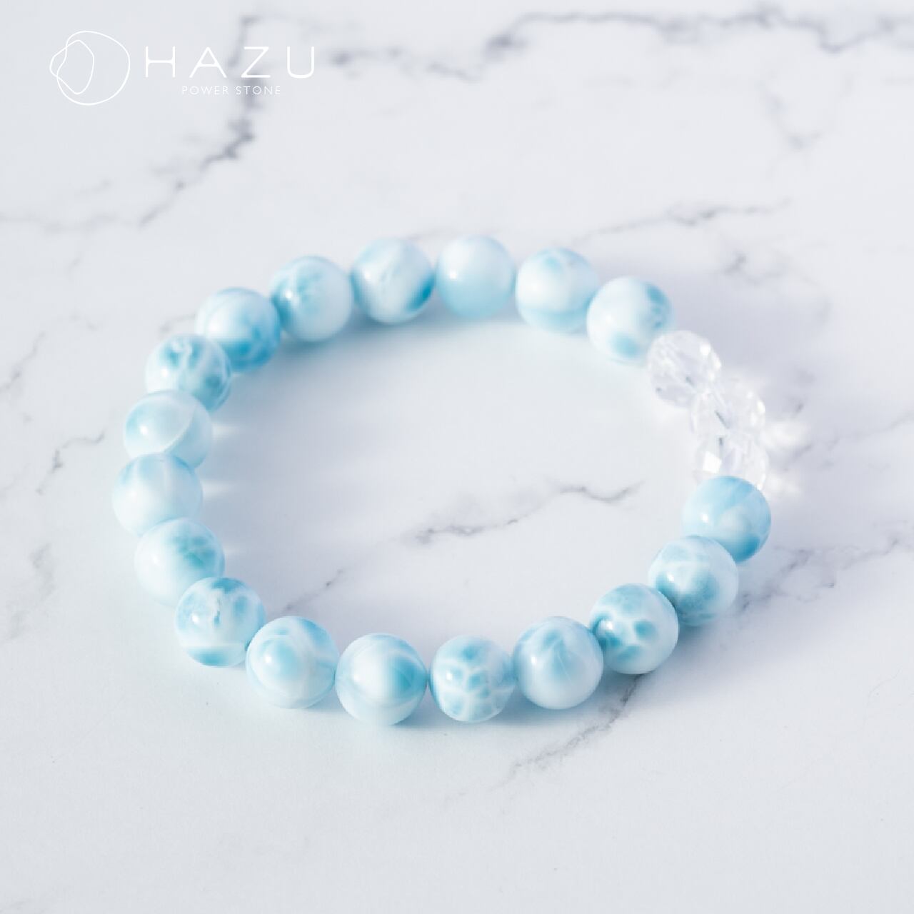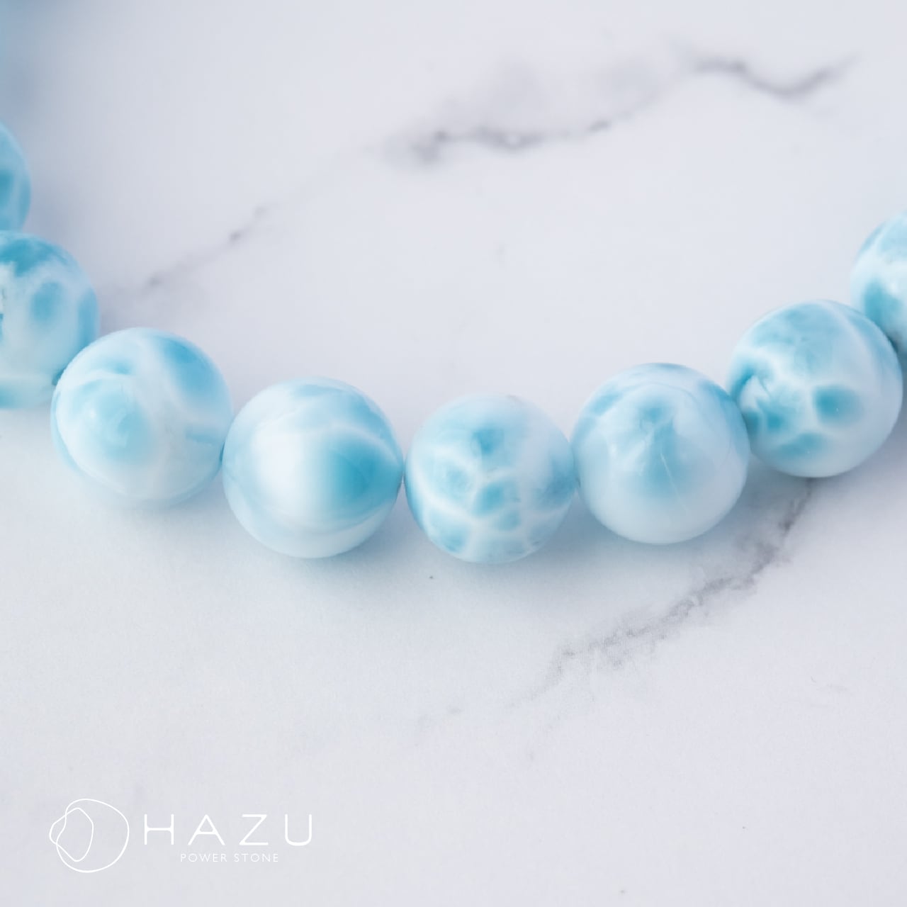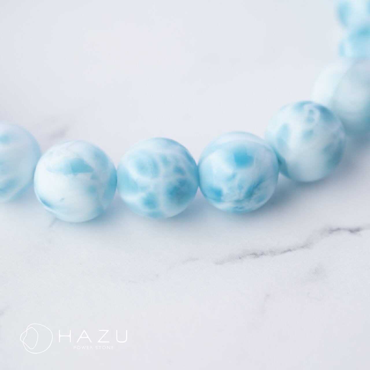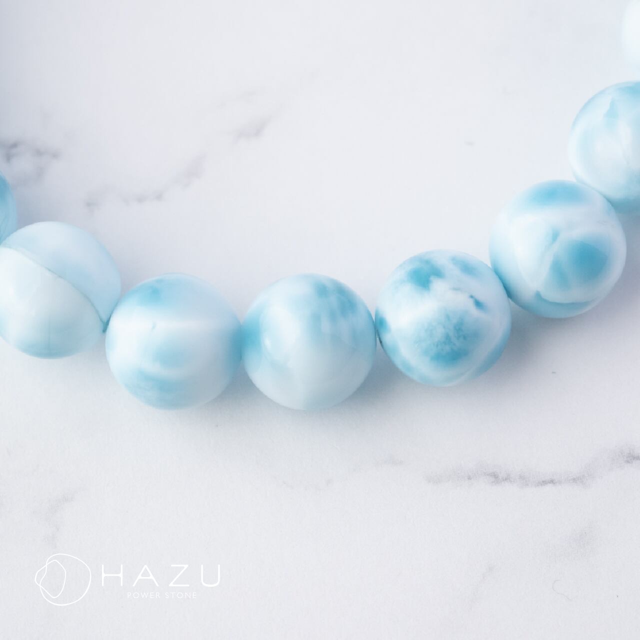 品質の良い、どの粒もしっかりと波模様が見えるラリマーブレスレット。