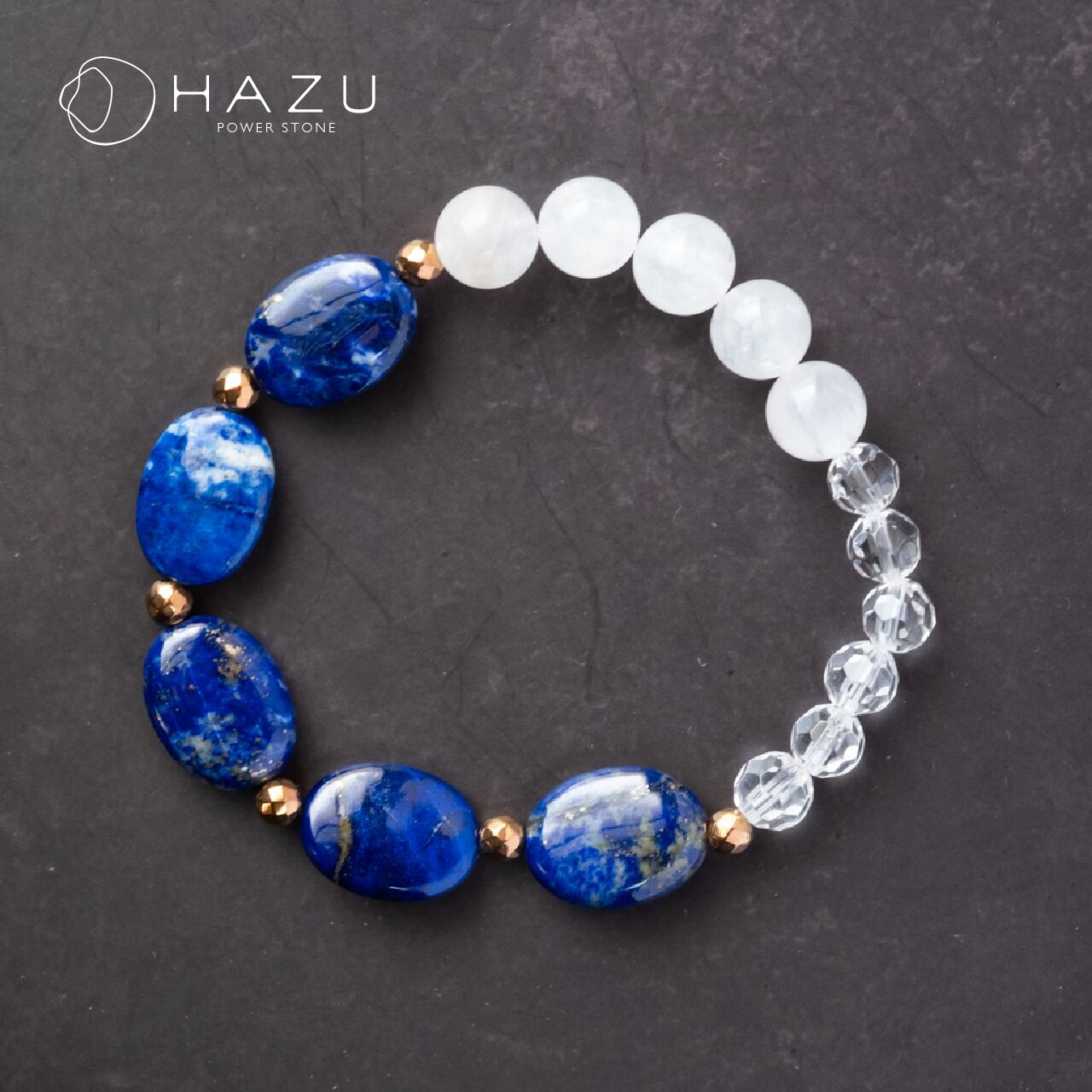 未来を照らす夜空の月[ラピスラズリ/ムーンストーン/水晶/ヘマタイト]