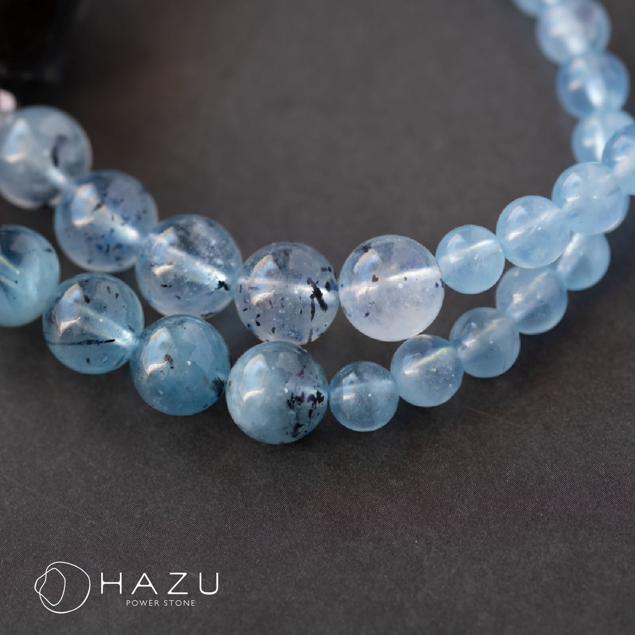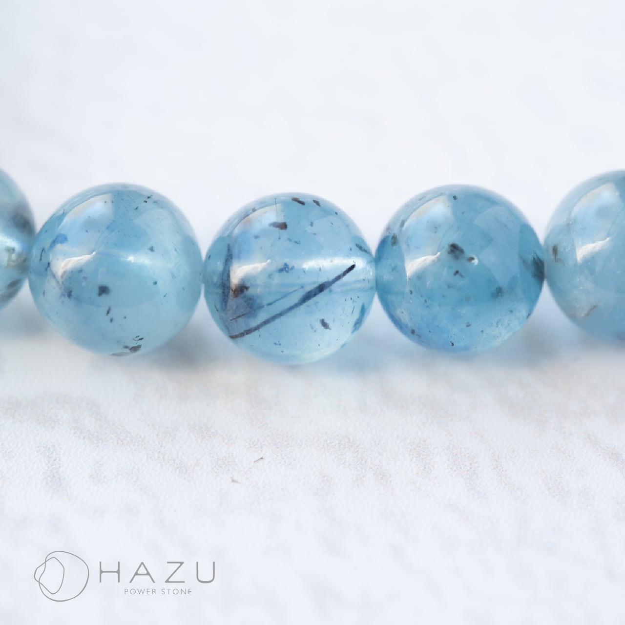透明度のあるブラックアクアマリン(約8mm)と
