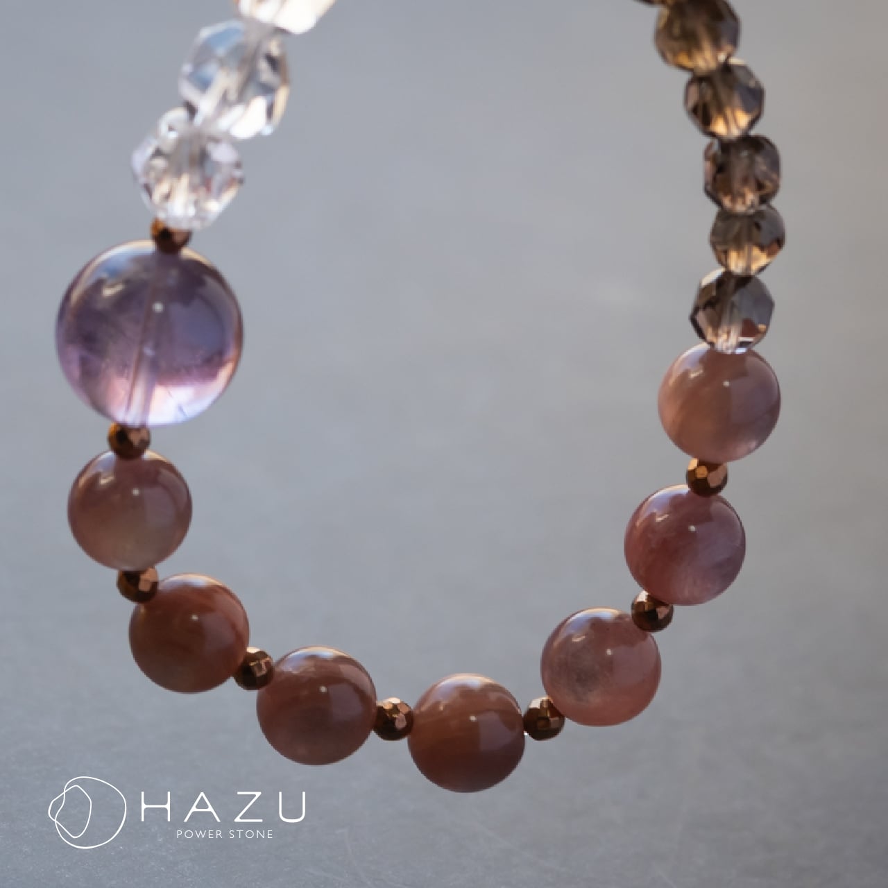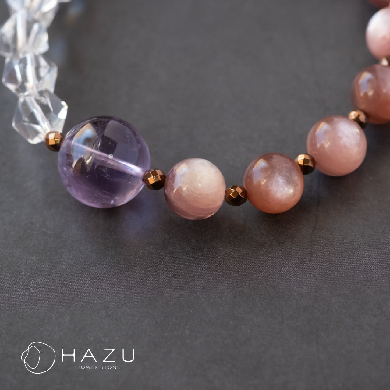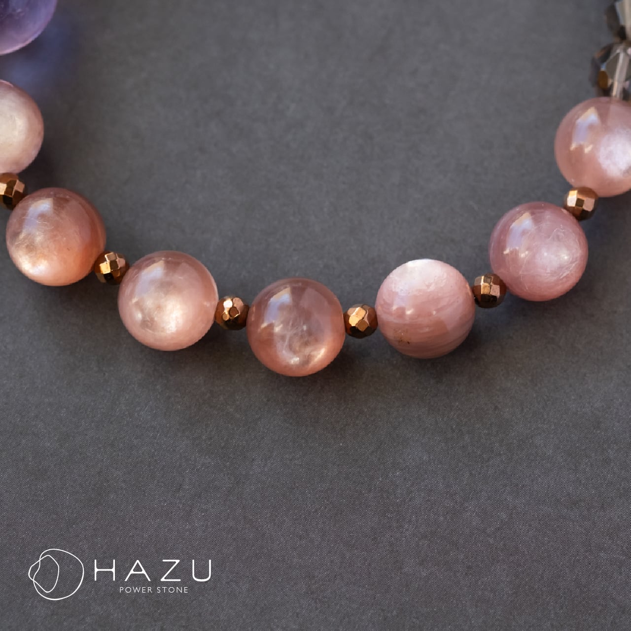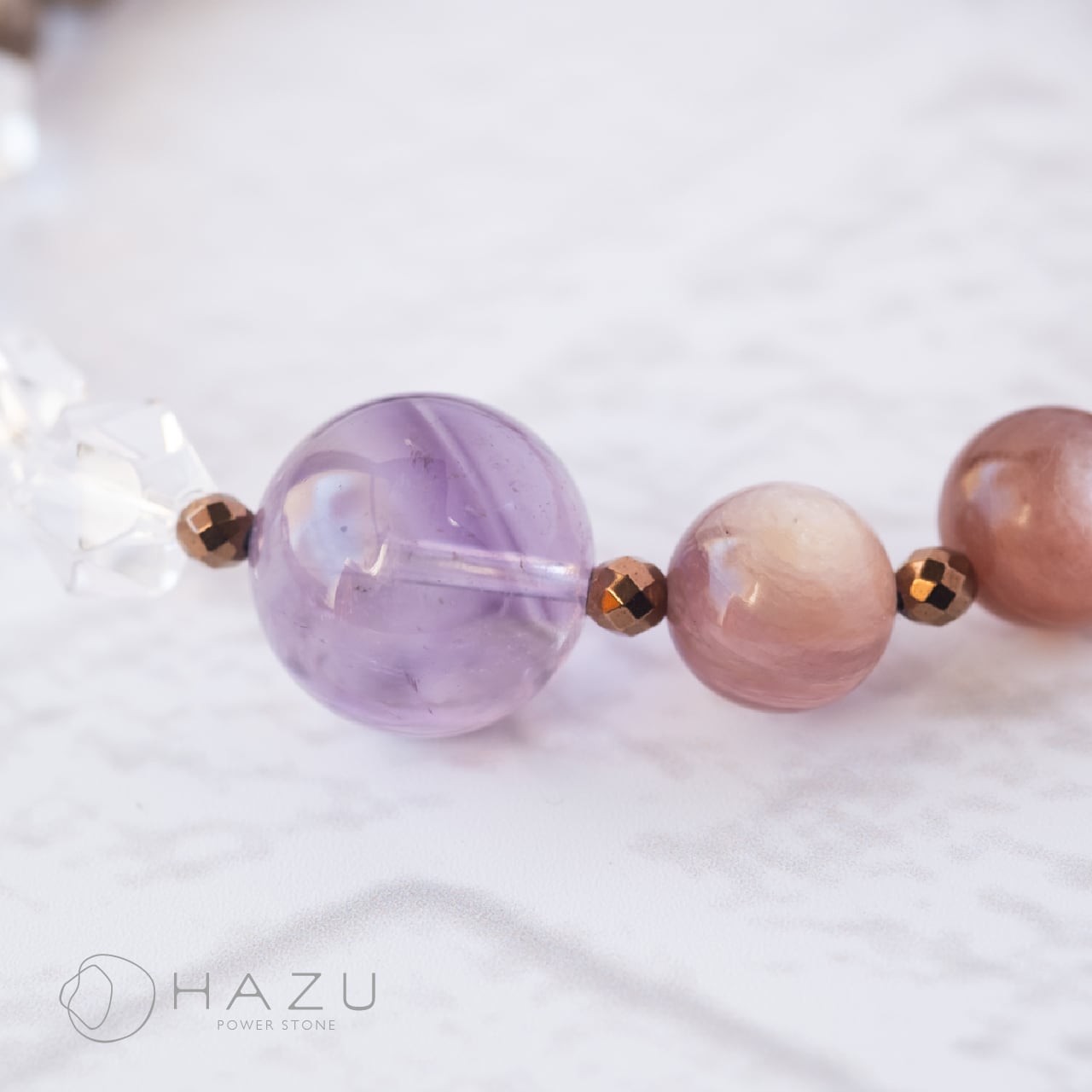 自然が織りなす神秘カラーの上品な癒し[ピンクマイカ/ボリビアンアメジスト/スモーキークォーツ/水晶/ヘマタイト]