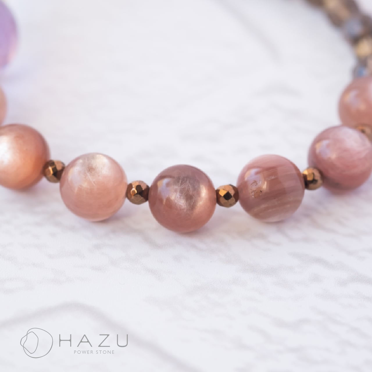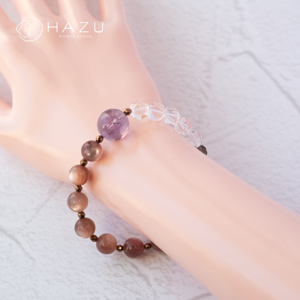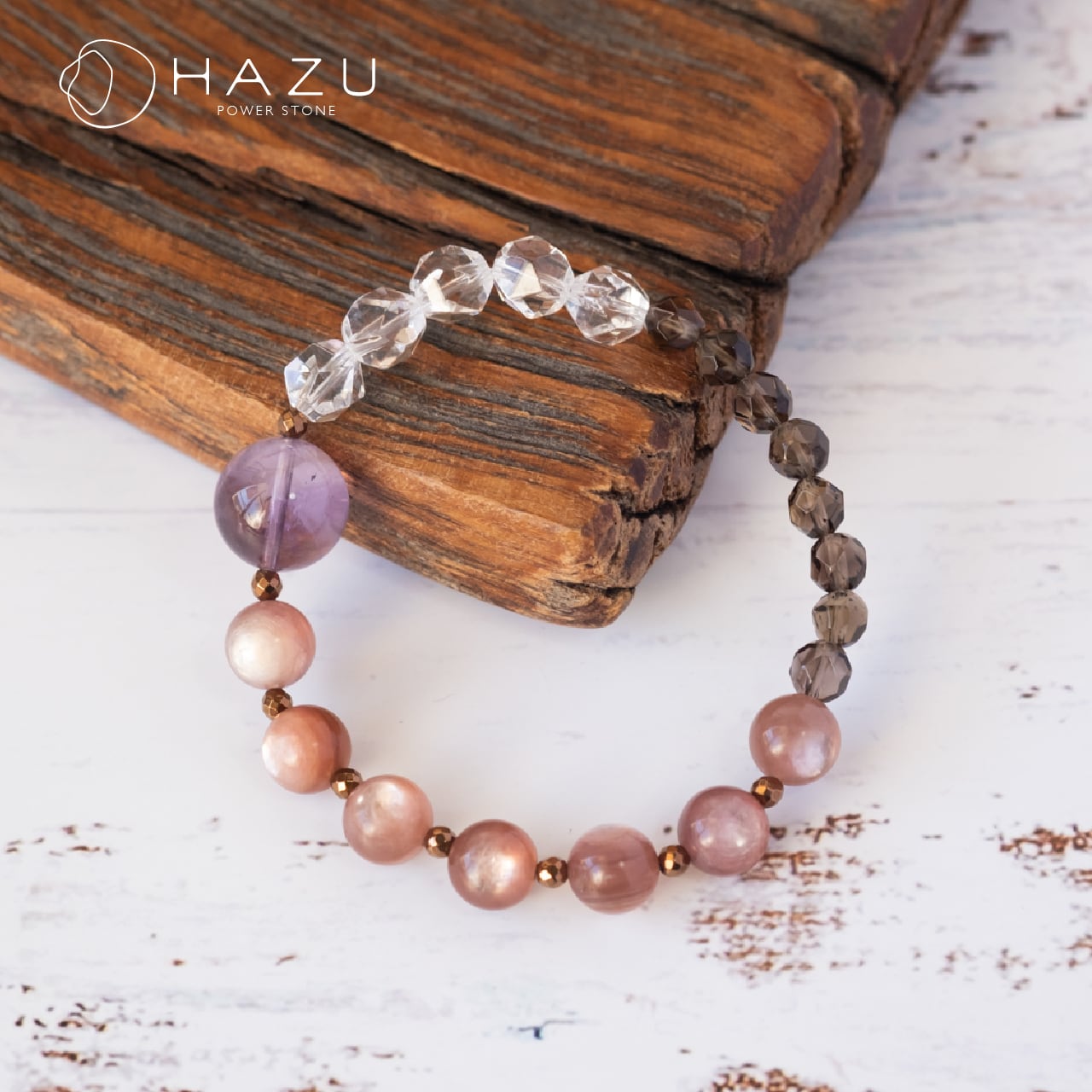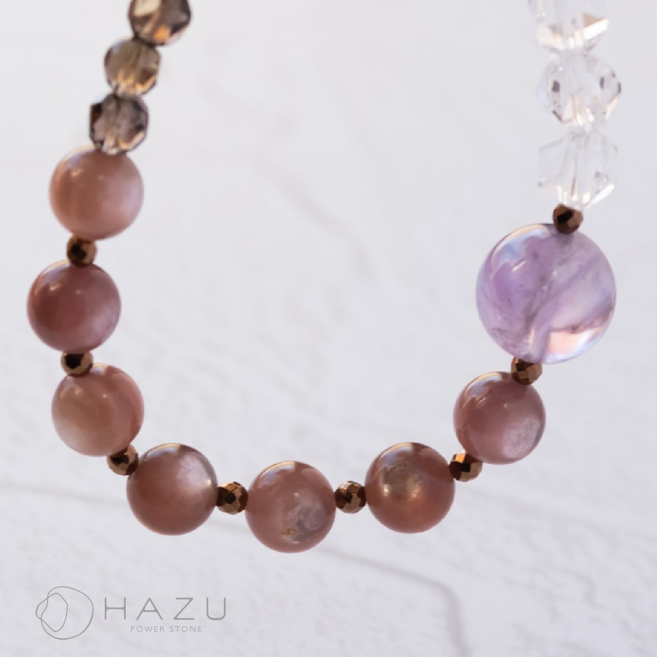 自然が織りなす神秘カラーの上品な癒し[ピンクマイカ/ボリビアンアメジスト/スモーキークォーツ/水晶/ヘマタイト]