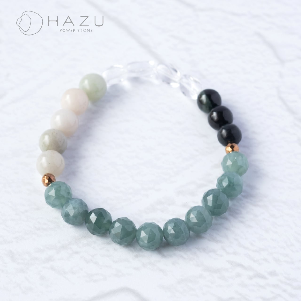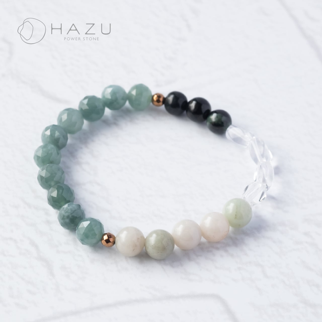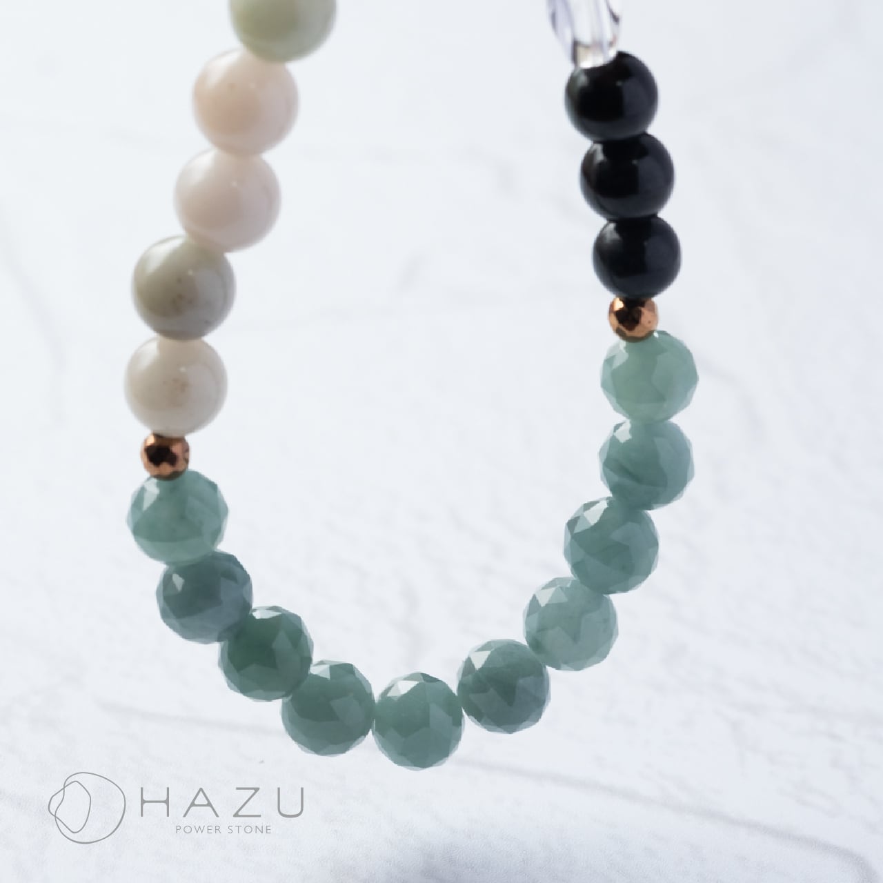 繁栄と五徳の3種の翡翠[翡翠(グアテマラ産、ミャンマー産)/ブラック翡翠/水晶]