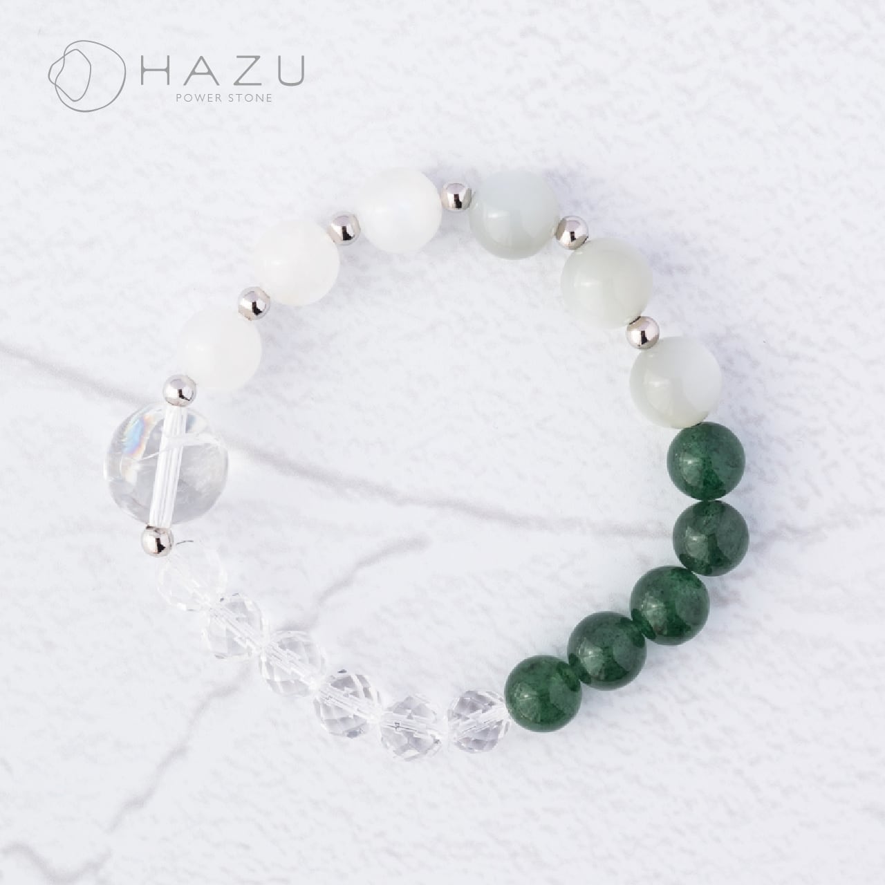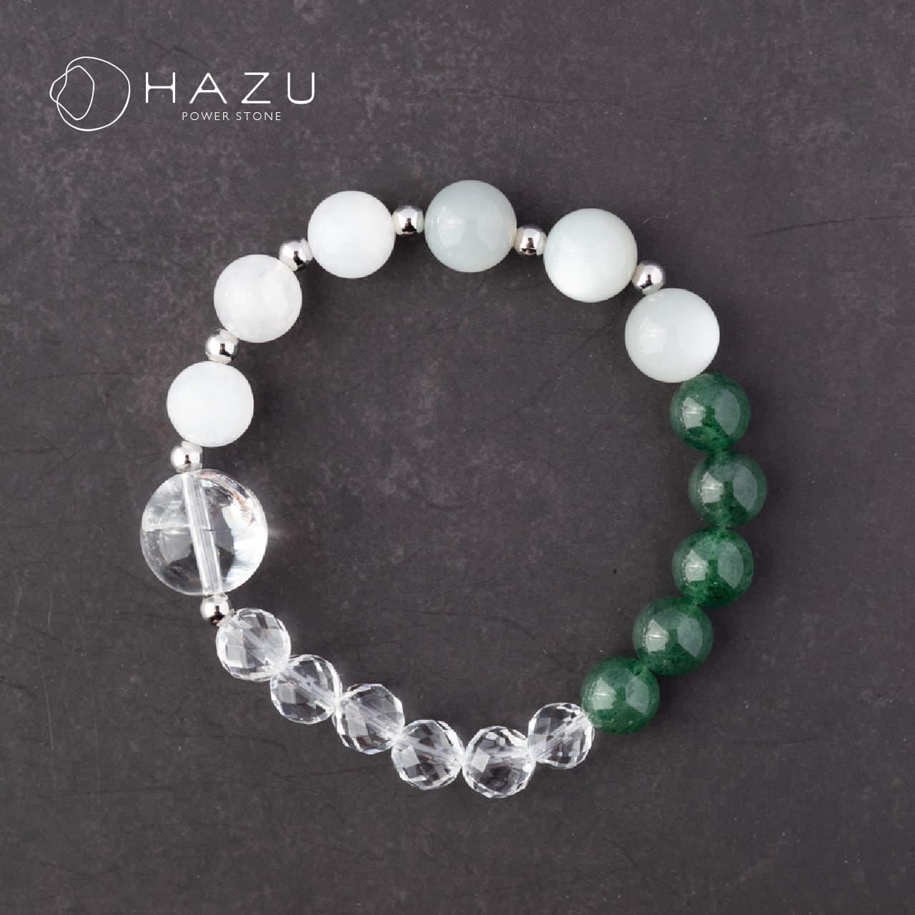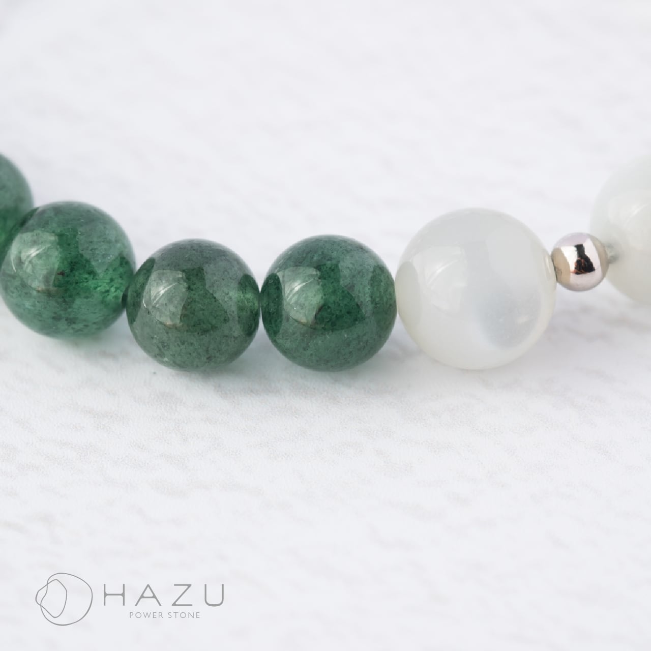 SALE☆静かな森の輝き[グリーンムーンストーン/ムーンストーン/グリーンストロベリークォーツ/アイリスクォーツ/水晶]