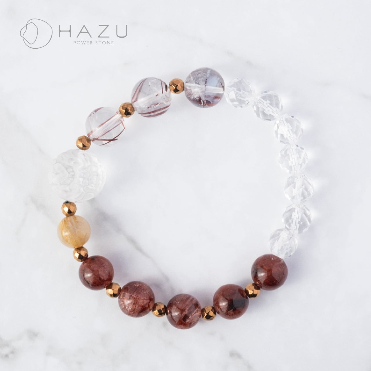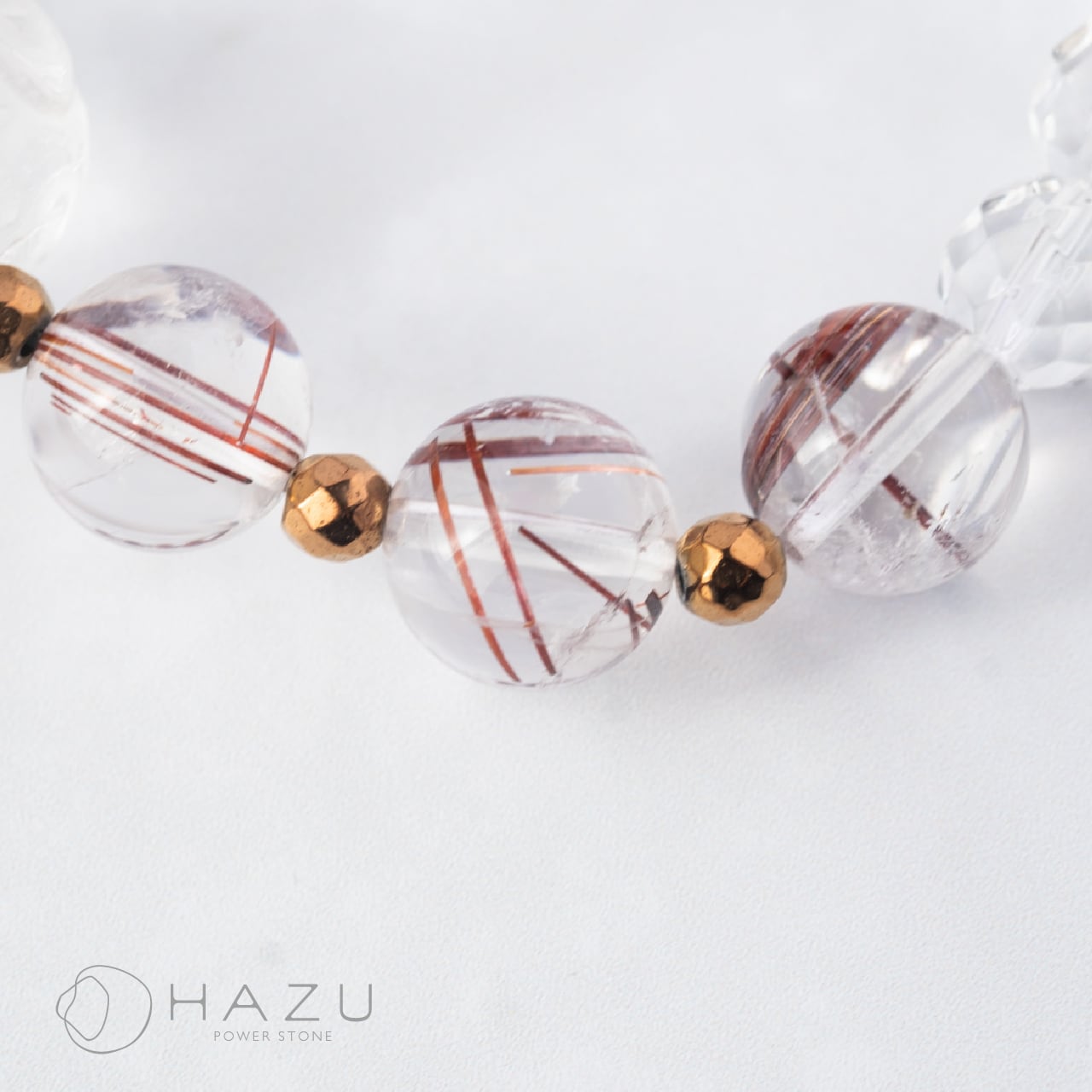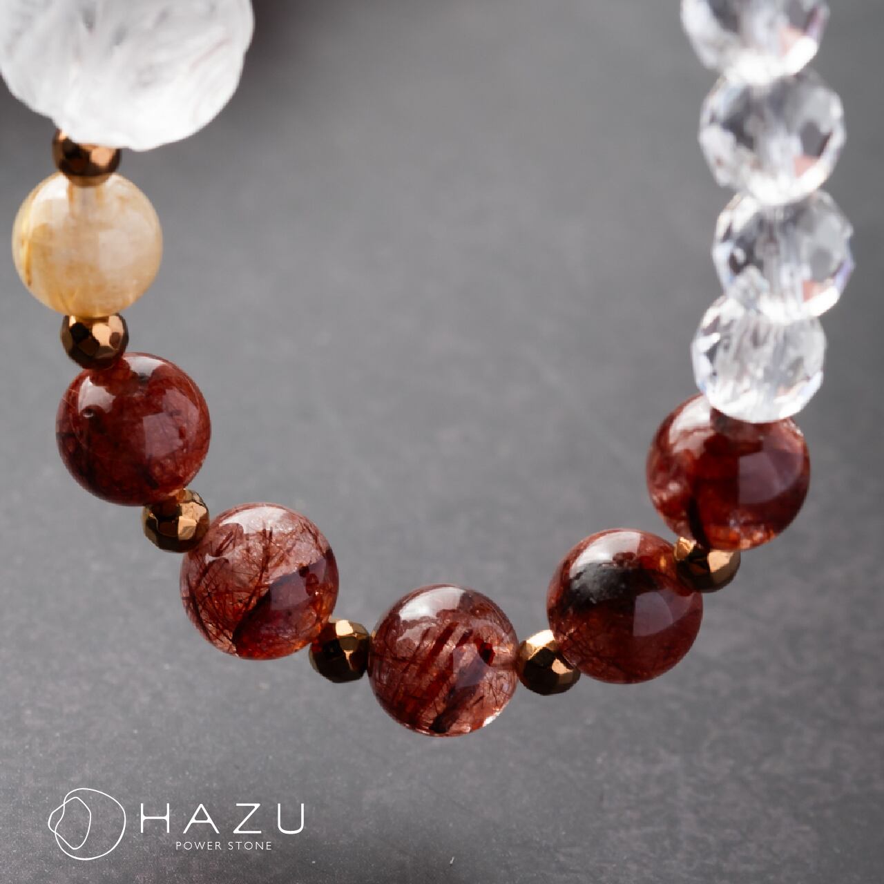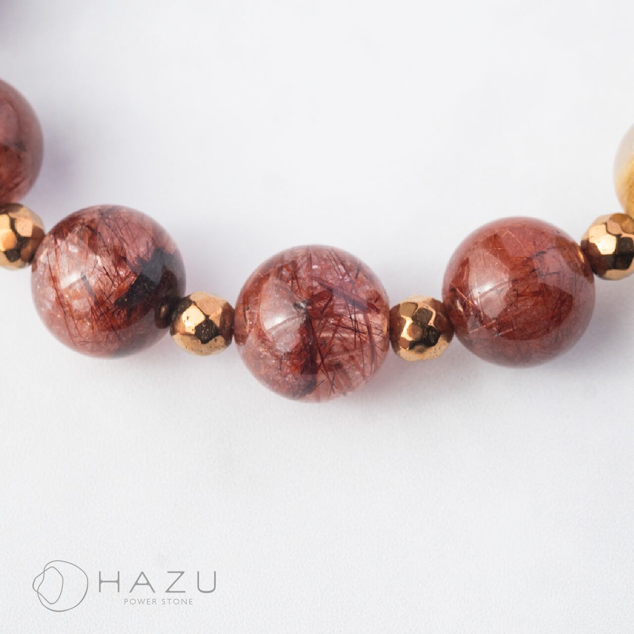 龍神と赤のパワー感じるブレス[レッドルチル/ルチルクォーツ/ヘマタイト/水晶]