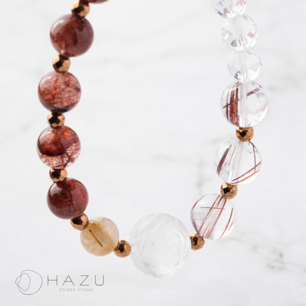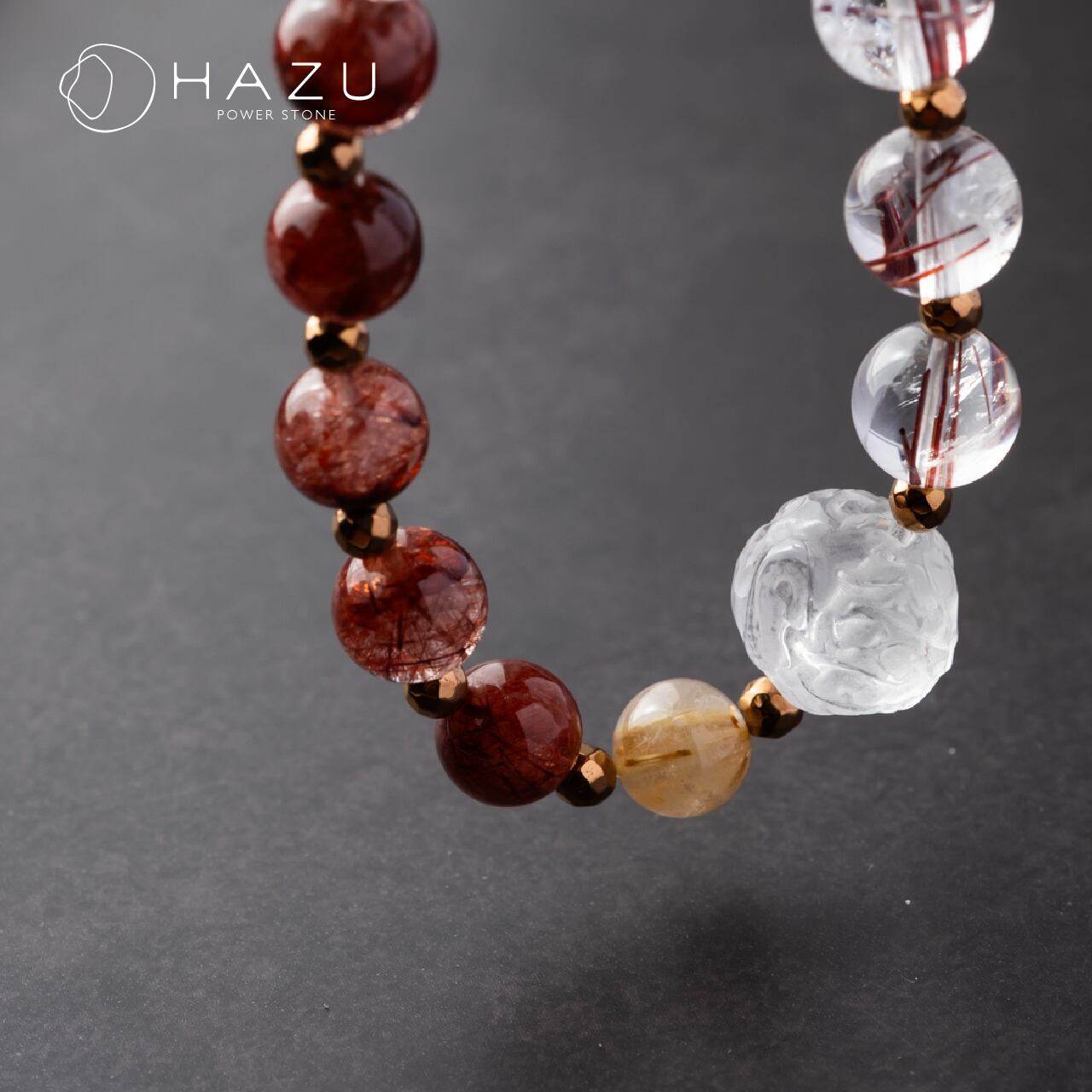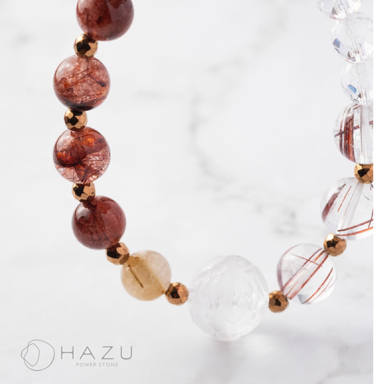 龍神と赤のパワー感じるブレス[レッドルチル/ルチルクォーツ/ヘマタイト/水晶]