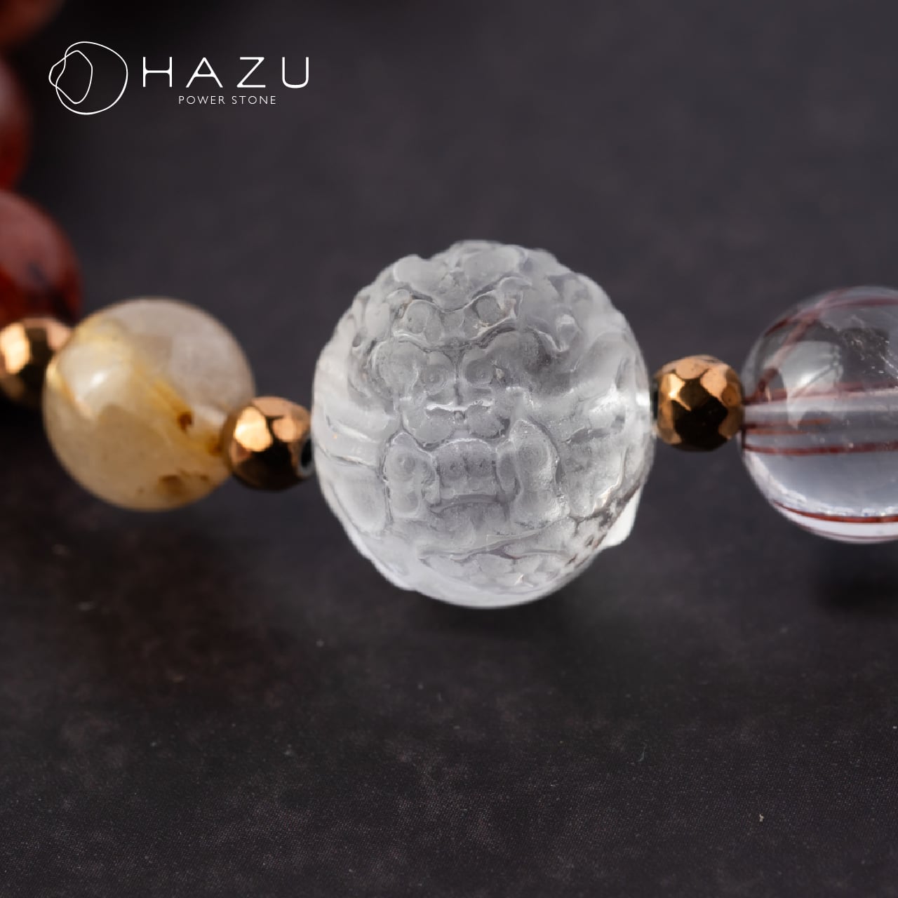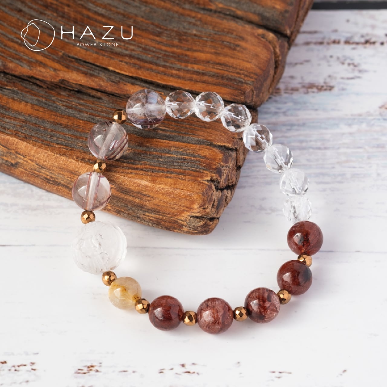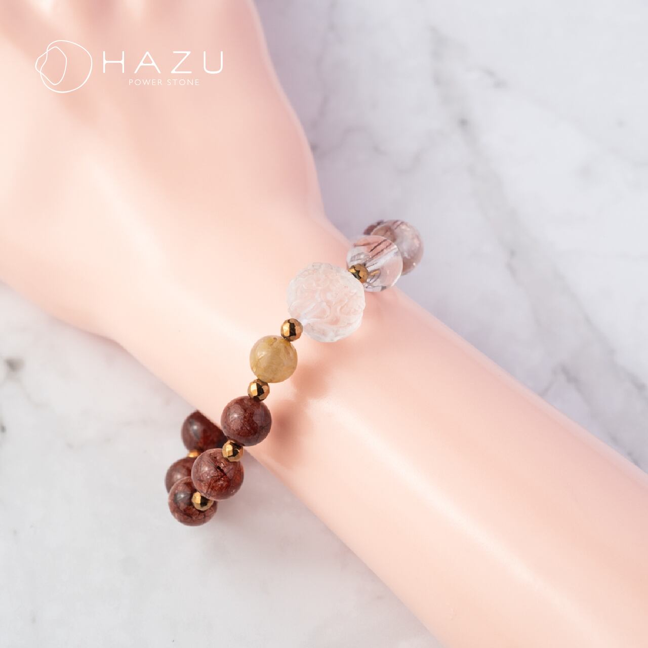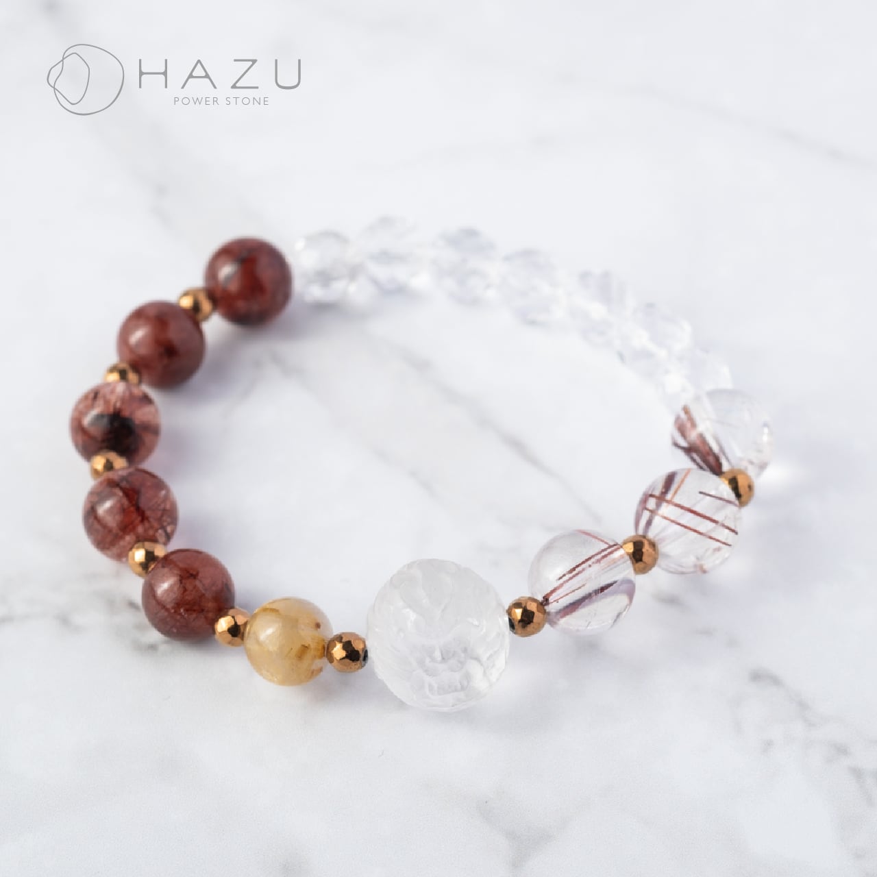 龍神と赤のパワー感じるブレス[レッドルチル/ルチルクォーツ/ヘマタイト/水晶]
