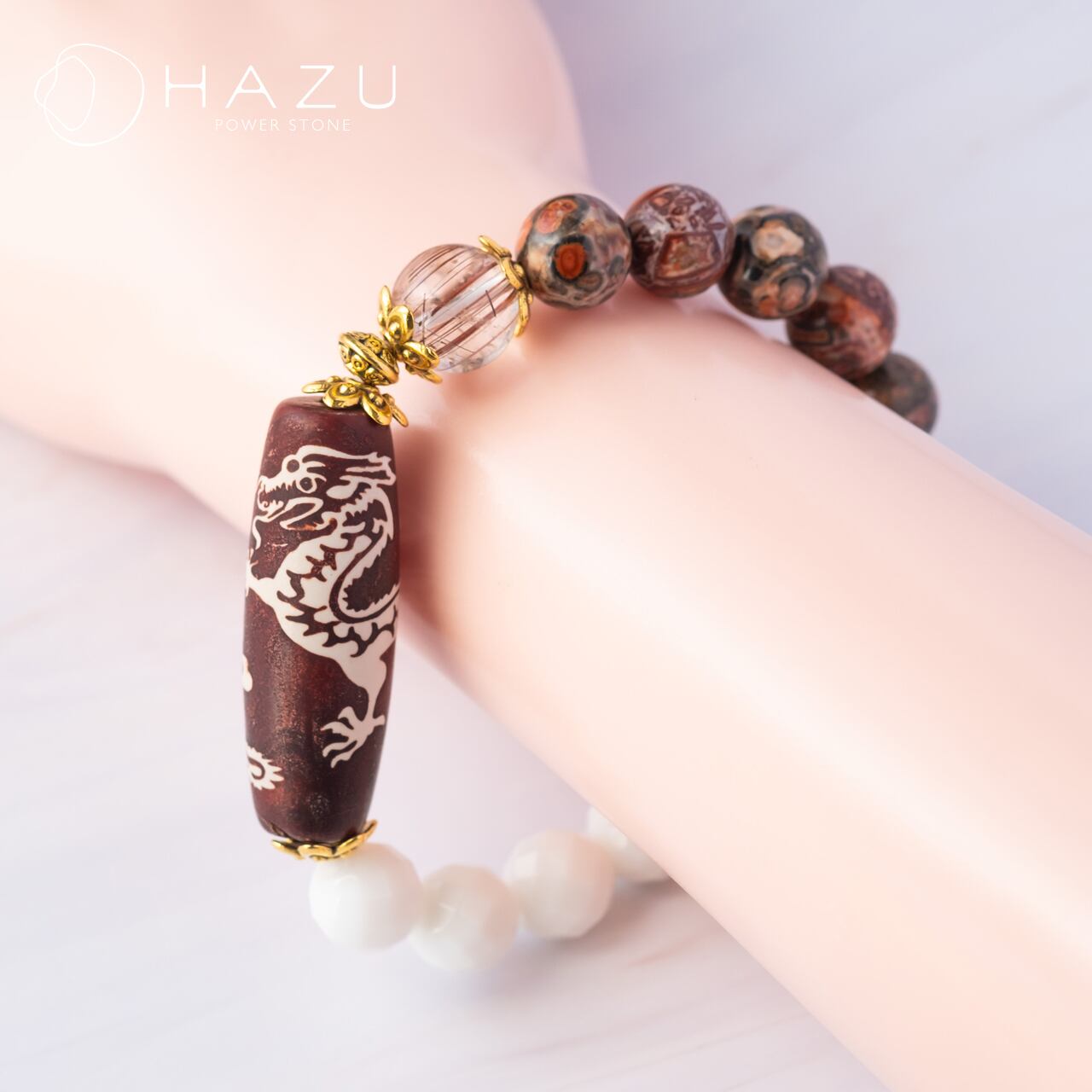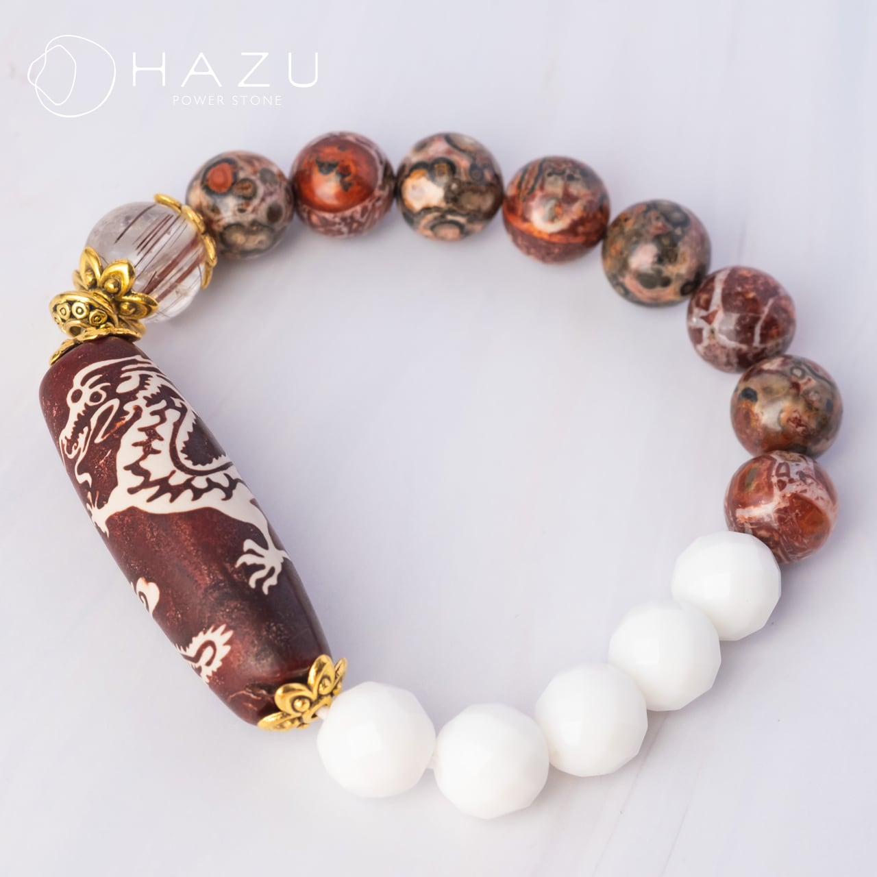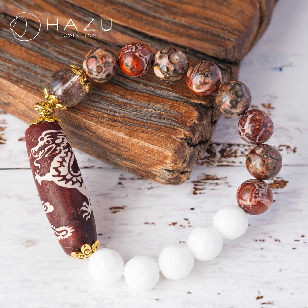魔除けと運気上昇!赤龍神パワーブレス[龍神天珠/龍宮舎利/ルチルクォーツ/ホワイトオニキス]