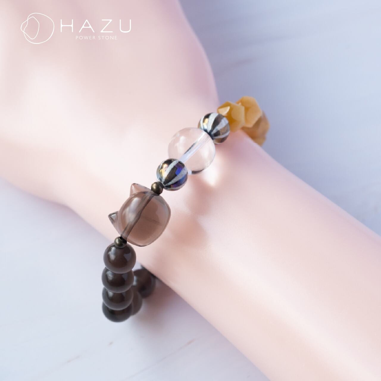 魔除けと金運の招き猫ブレス[アイスオブシディアン/ゴールデンタイガーアイ/アゲート/水晶]